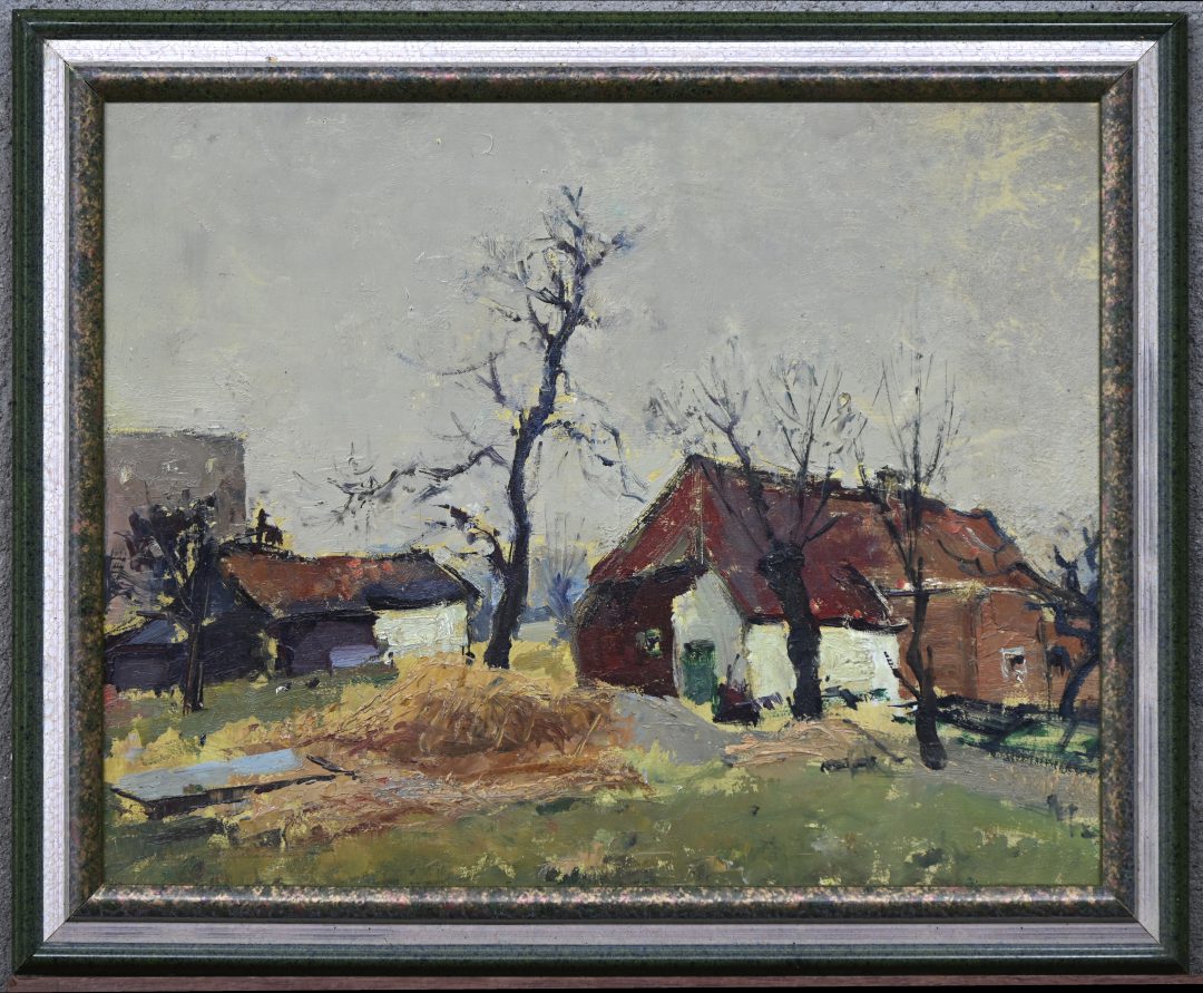 #364Richard De Bruyn‘Zicht in de Westhoek’, post impressionisme. Olieverf op doek, getekend met monogram B. R. en een ster.