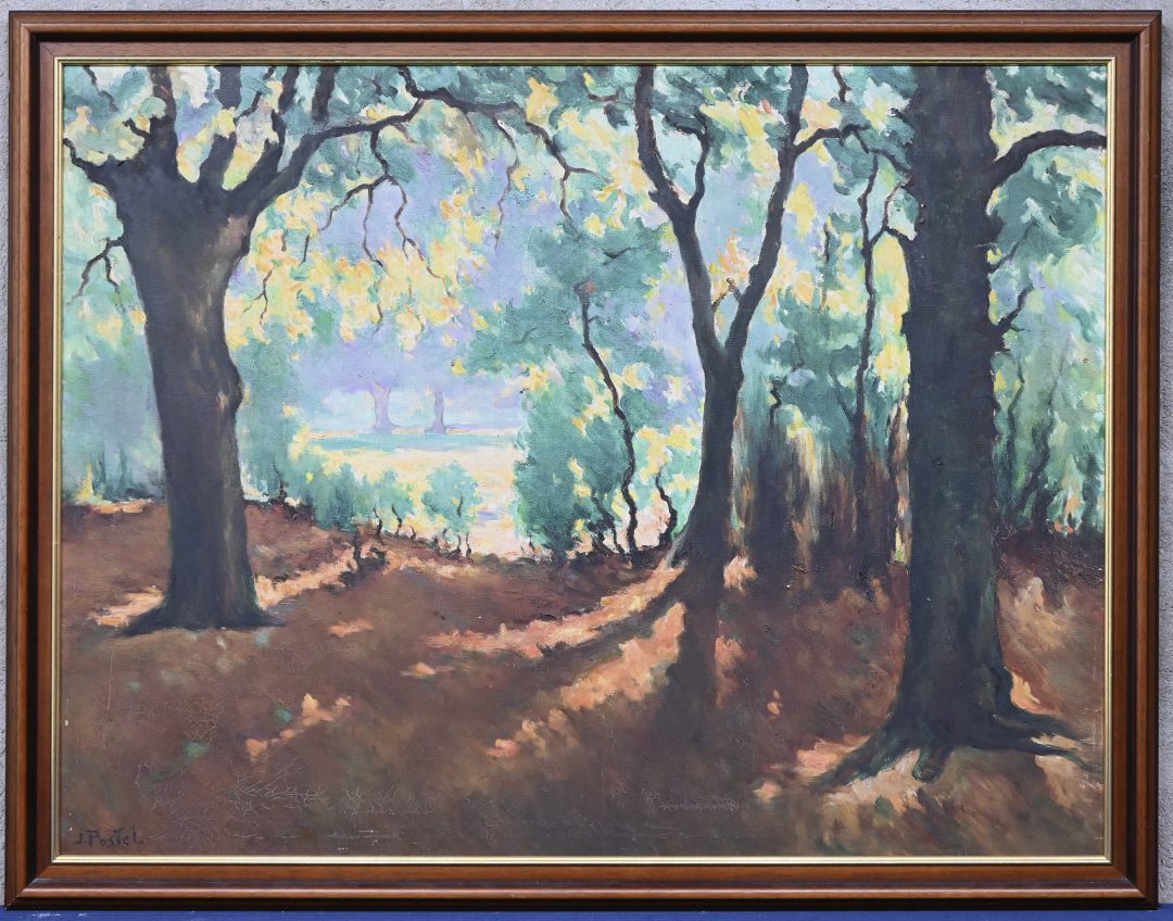 #432Paul HagemansPeriod: Antwerpen 1884-1959‘Boszicht’. Olieverf op paneel. Getekend.