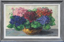 'Flower vase', oil on canvas. Signed Doeser. -