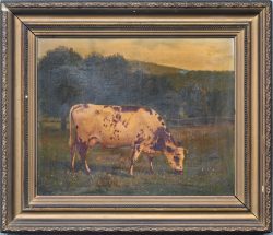 'Grazing cow', oil on canvas. A 19th-century piece, signed. -