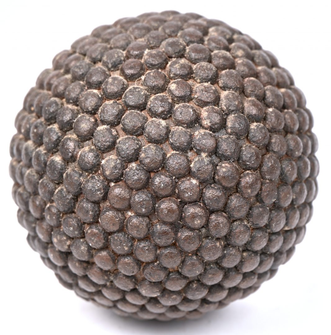 boule cloutée, een antieke houten petanquebal beslagen met ronde nagels. Gemerkt: 2.