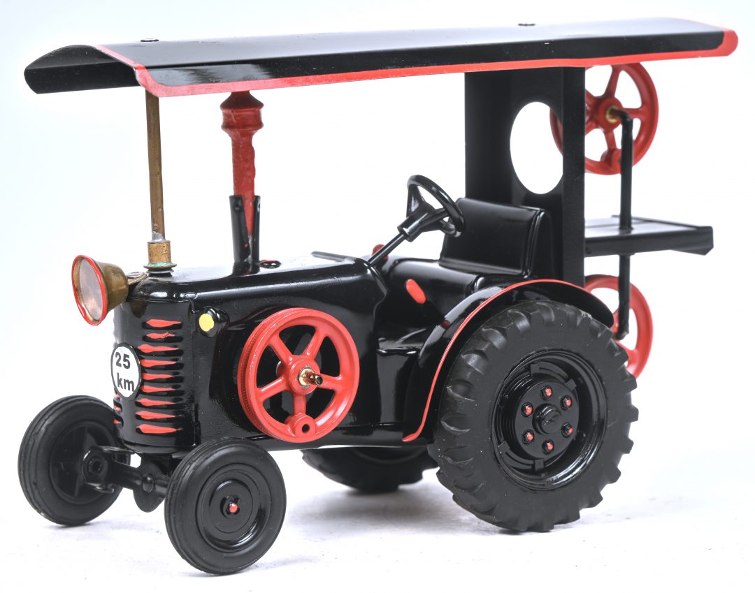 A tin paddle steamer with a working steam engine. Model T-263, number 1 out of an edition of 60 copies. -