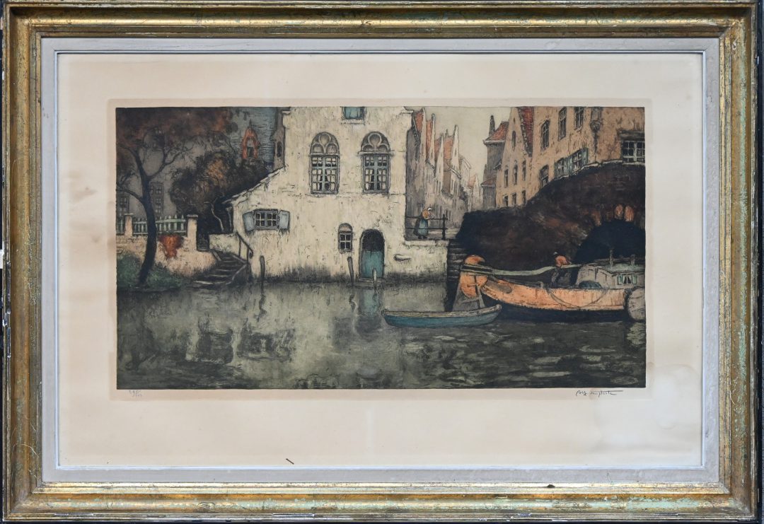#69Alfred Van Nesten‘Het oude poorthuis’, een kleurenets/aquatint. Getekend buiten de plaat ‘Alf. Van Nesten’. Nr. 232 uit een oplage van 350.