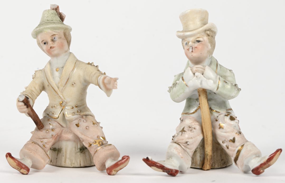 A multicolored porcelain figure of a shoemaker, marked Capo Di Monte. Also included is a multicolored biscuit figure of a girl.No longer availableOnline onlyActive bid: 4.00 €Dim. h 28 cmEstimate: € 10 / 20 -