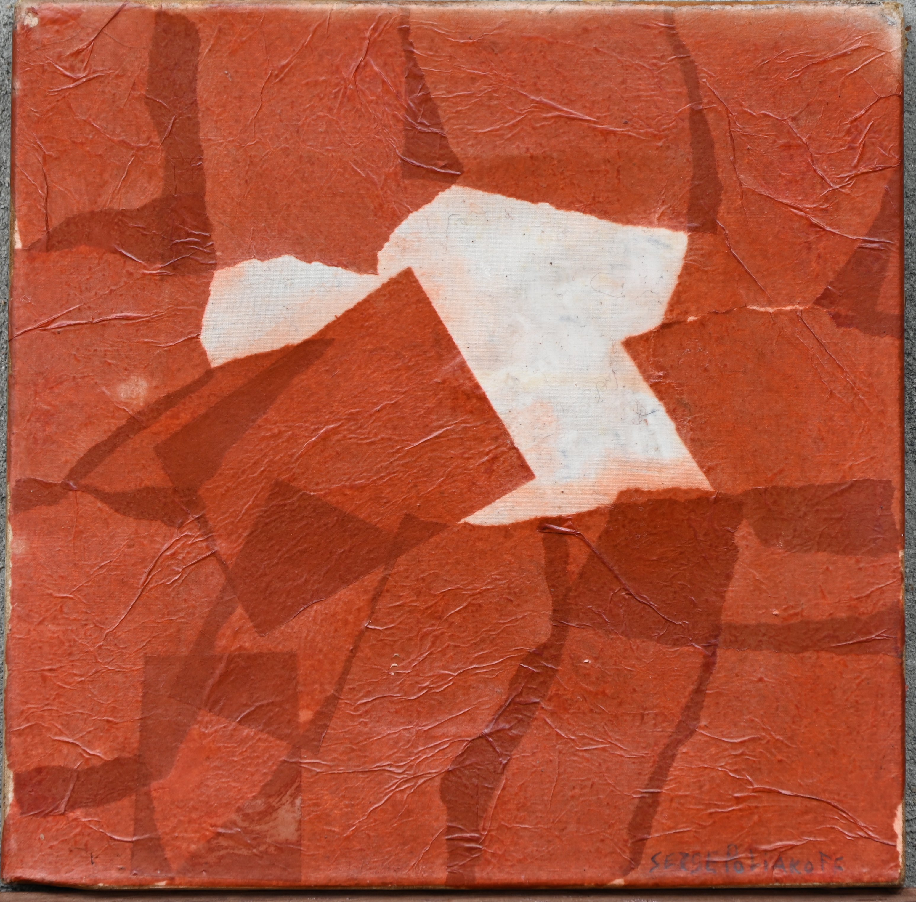 Collage with red paper on canvas. Signed by Serge Poliakoff.