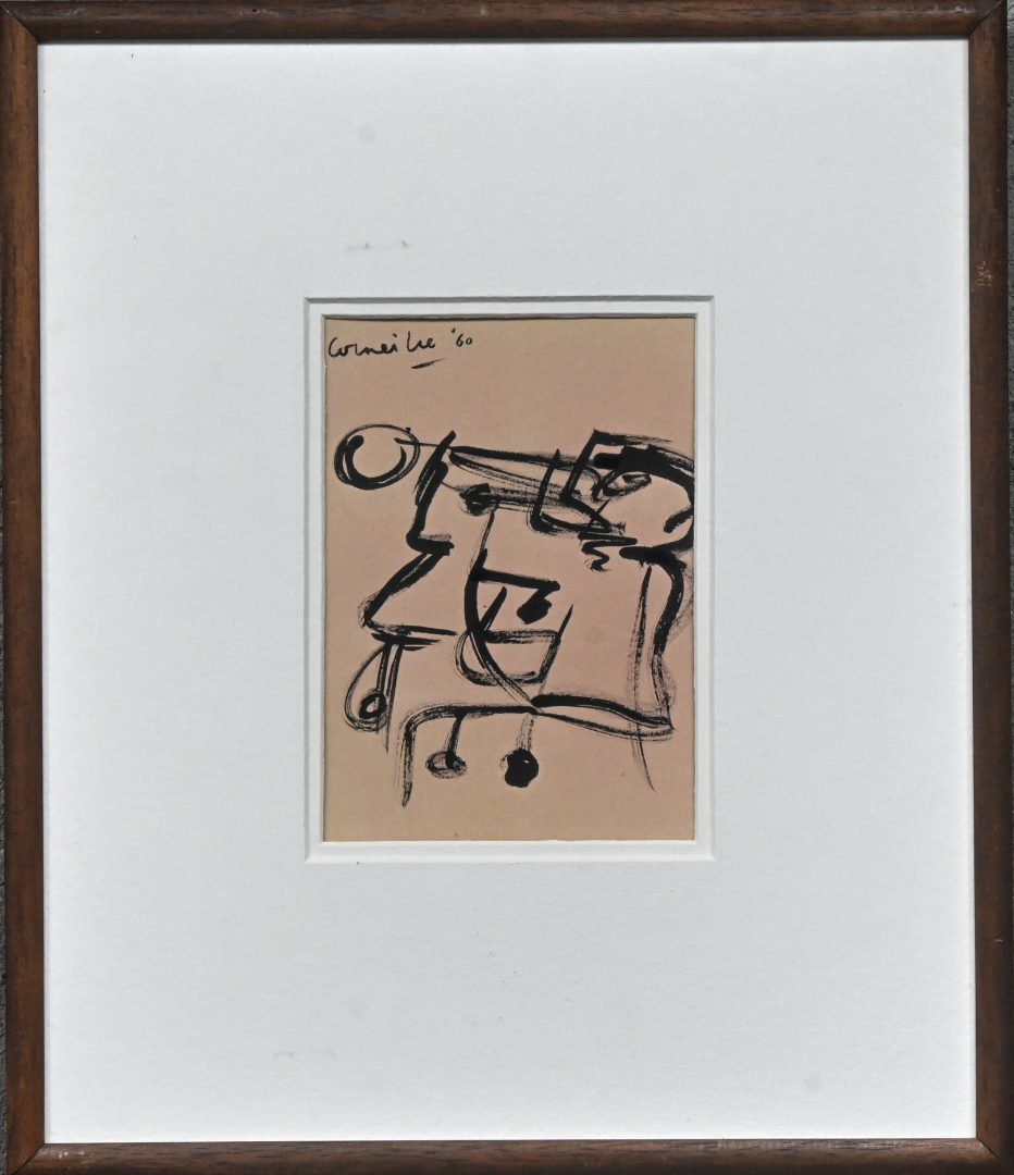 #132‘Abstracte compositie’, gemengde techniek op papier. Getekend Mathieu. Met op de rug een toewijzing aan Georges Mathieu.