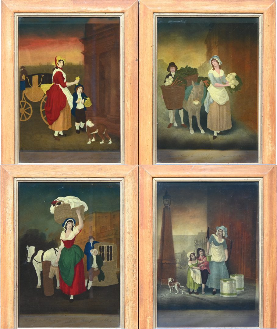 #124Een partij van vier kaders, twee aquarellen en twee offset prints.