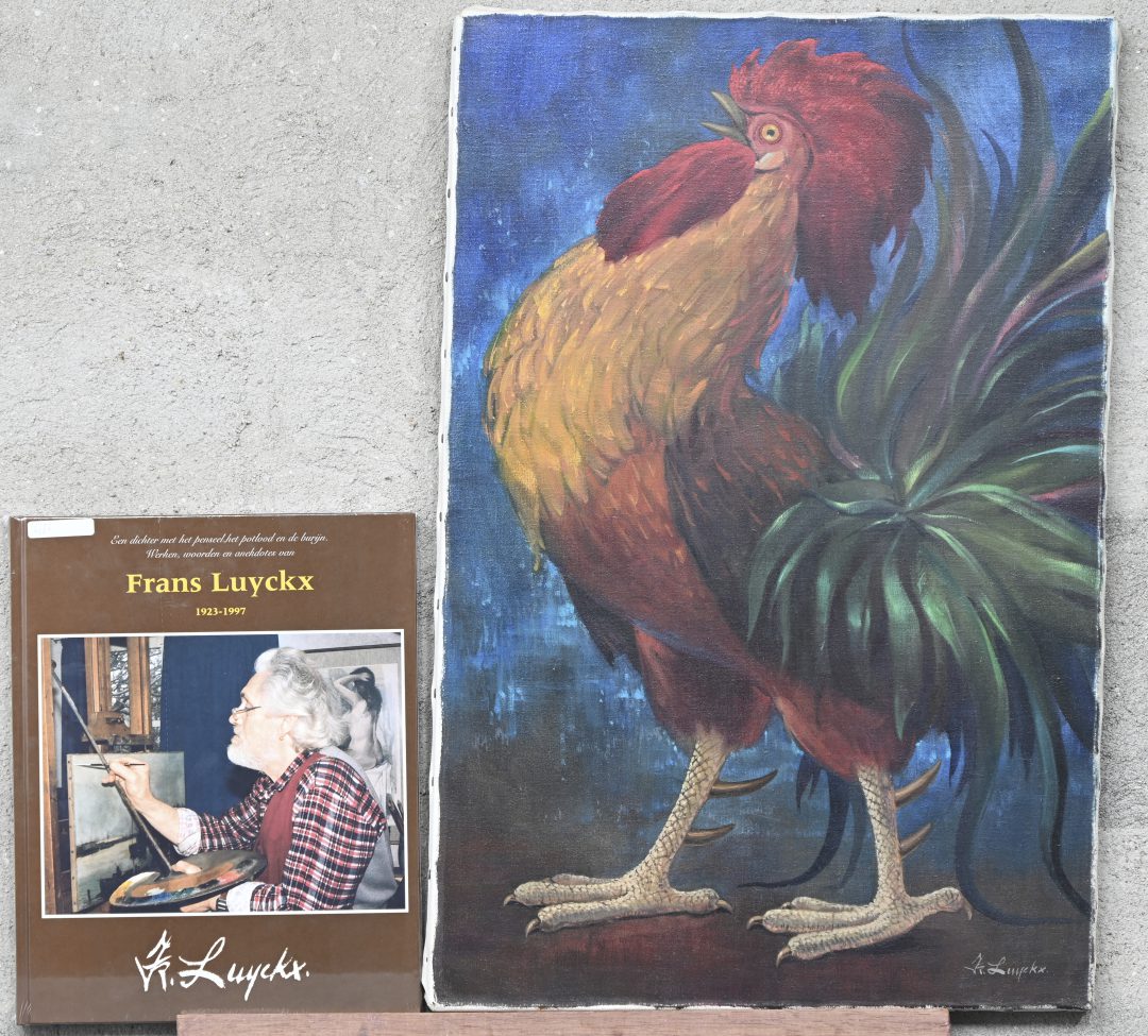 ‘Dageraad’, een symbolistisch olieverfschilderij op doek. Getekend Fr. Luyckx. Toegevoegd een boek over het werk van de kunstenaar.