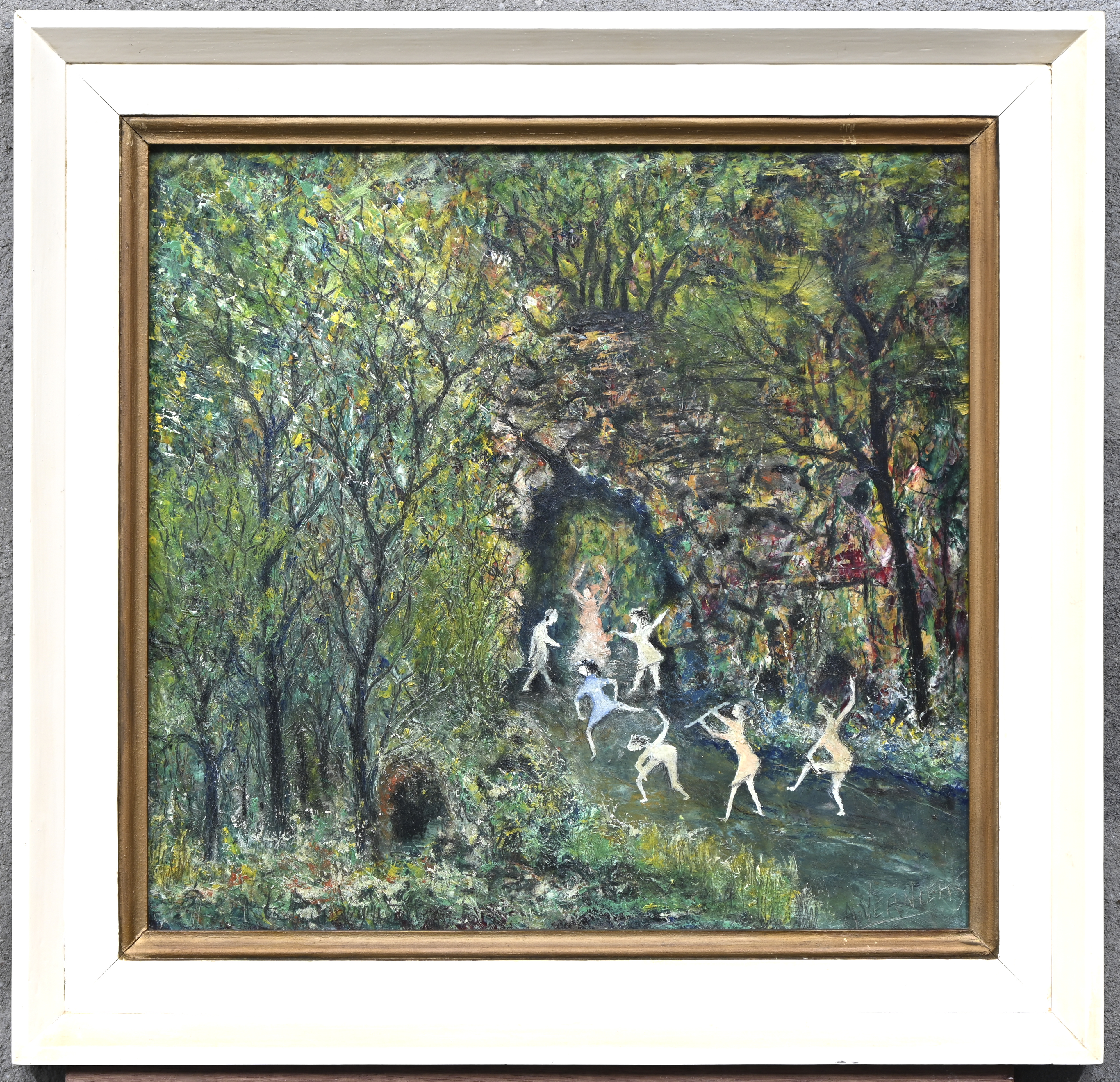 #422‘Staand naakt’, olieverf op schilderspaneel. Een abstract impressionistisch werk, getekend Bach ‘90. Met op de achterkant een niet geverifiëerde toewijzing aan Elvira Bach, 1990.