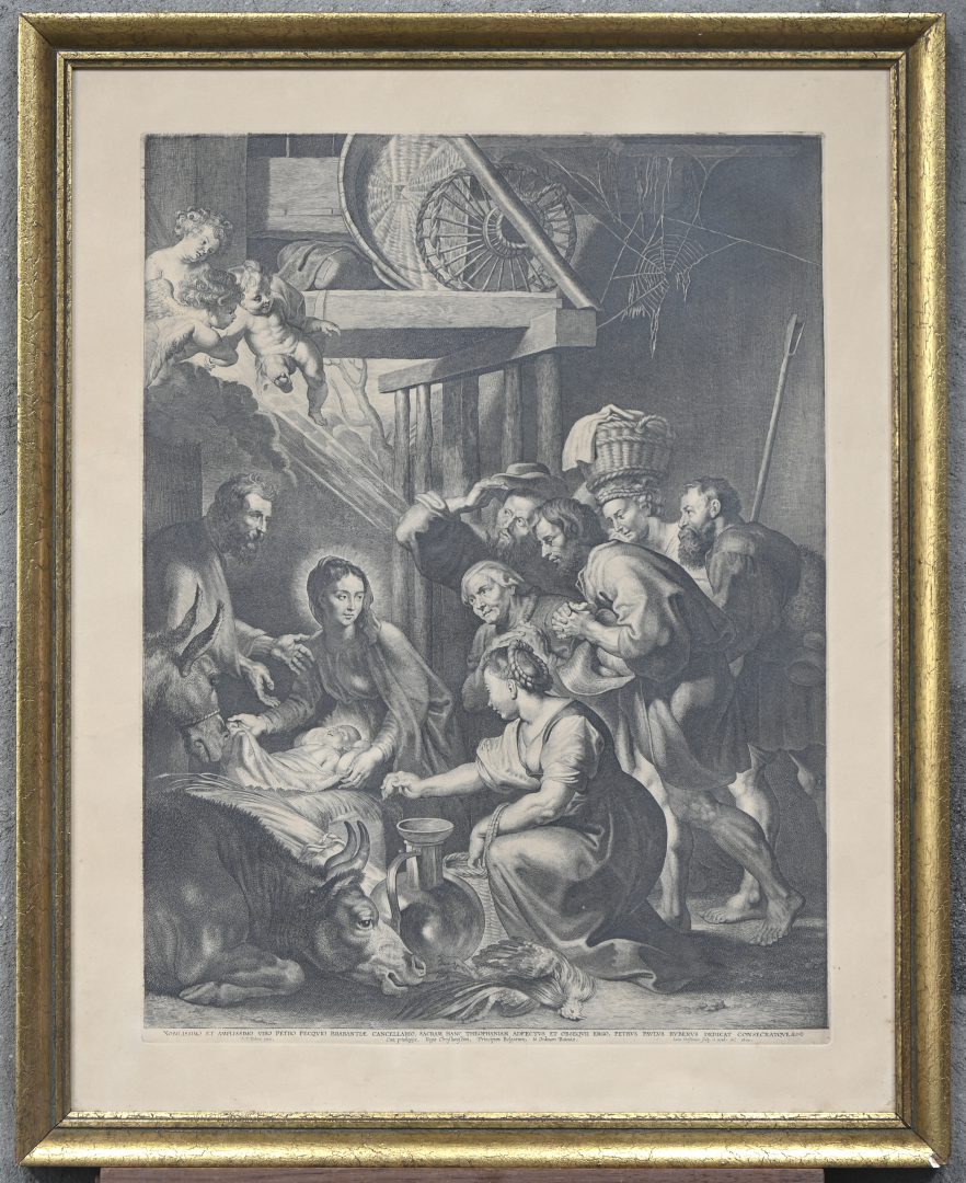 “The Adoration of the Shepherds,” an antique etching after a work by Rubens.