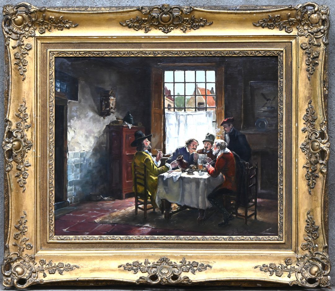 'Art lovers', oil on canvas. 19th century, unsigned. The painting has been relined and shows some dents.