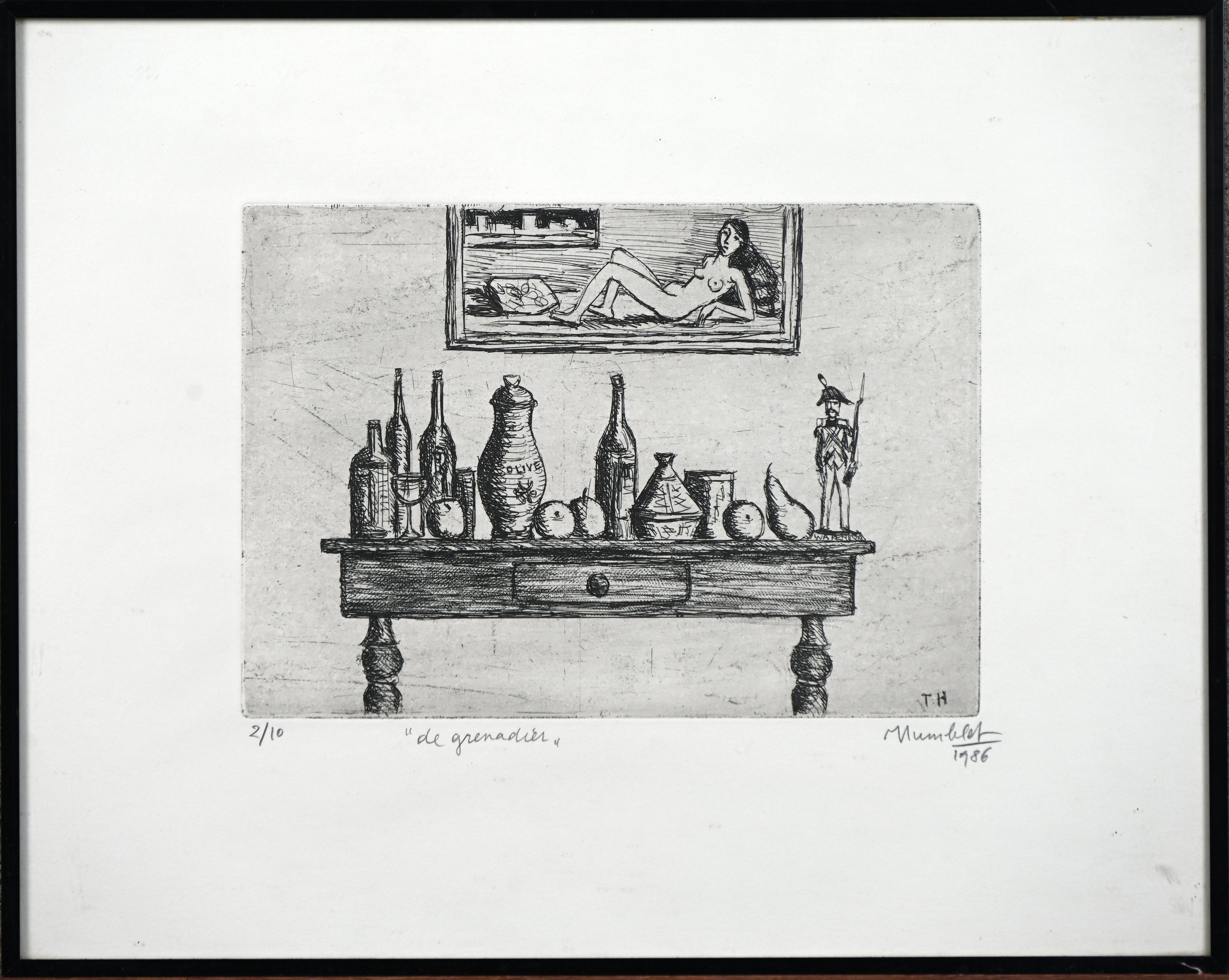 'Nude on the Couch', a monochrome lithograph in brown tones. Signed; Humblet. With monogram .T.H on the stone.No longer availableDim. 44/36 cmEstimate: € 40 / 60