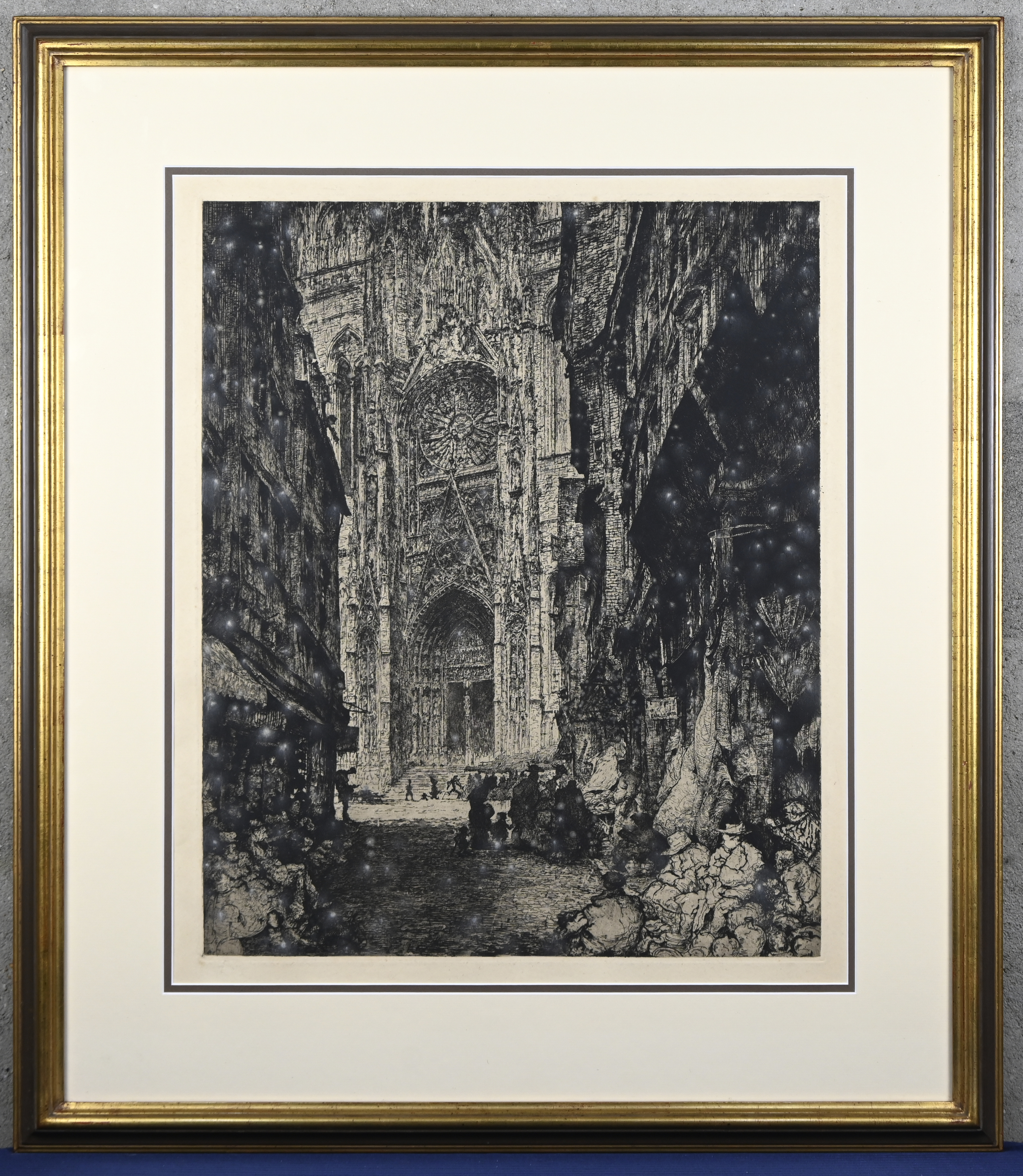#184Frans Masereel‘l’Aigle de Distelmonde’, een monochrome ets. Getekend binnen de plaat; Frans Masereel. De ets is gemaakt voor de Contes d’Horace Van Offel, een bibliofiele uitgave met 22 kortverhalen van de auteur Horace Van Offel (Antwerpen, 1878-1944) uitgegeven door de “Editions des artistes” in Brussel in 1935.