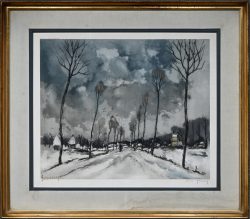 #124Winterlandschap. Kleurentithografie naar een werk van Savereys door Roger Hebbelinck.