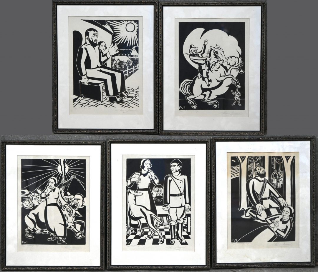 #232Félix Labisse‘Twee dansende bidsprinkhanen’, een kleurenlitho getekend Labisse. Nr. 97 uit een oplage van 175 exemplaren.