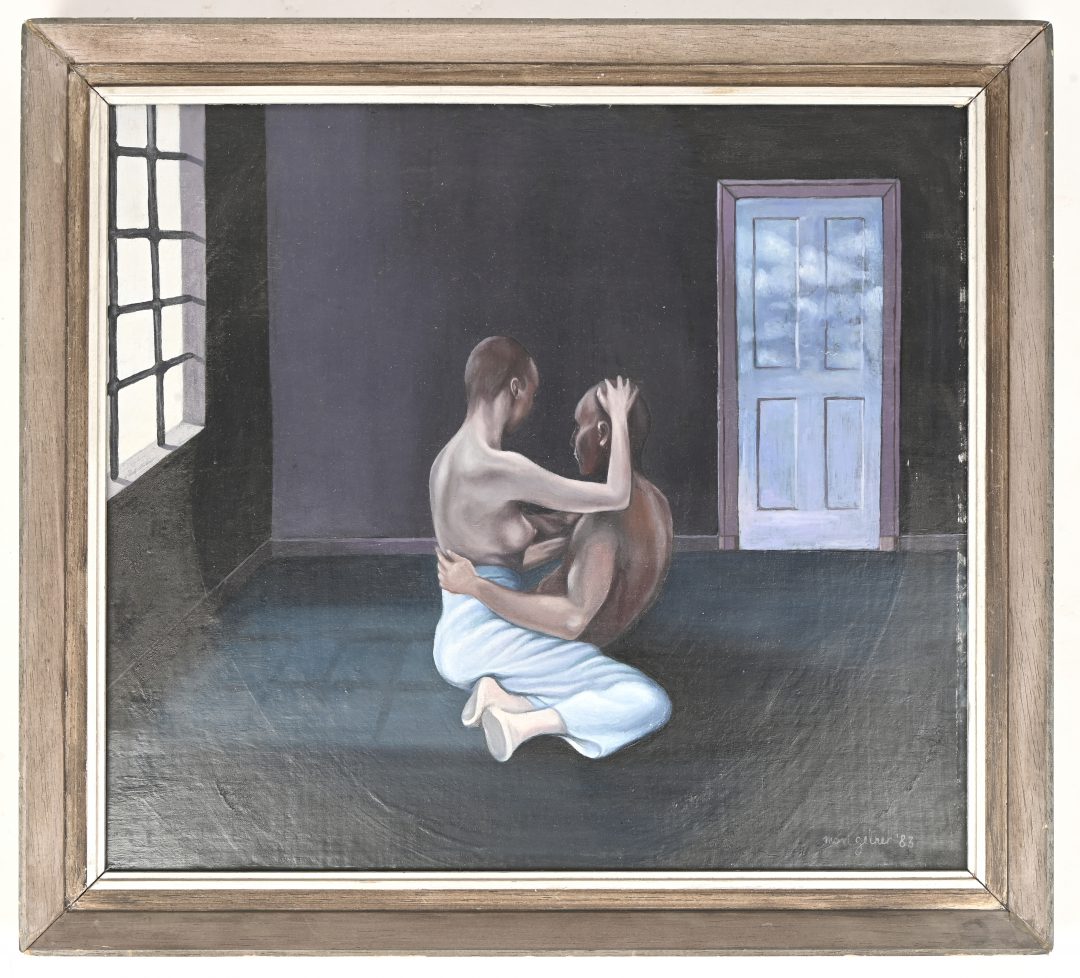 ‘Winters landschap’ en ‘marines’. Een lot van drie olieverfschilderijtjes op paneel. Naar de 19e eeuw. Getekend.
