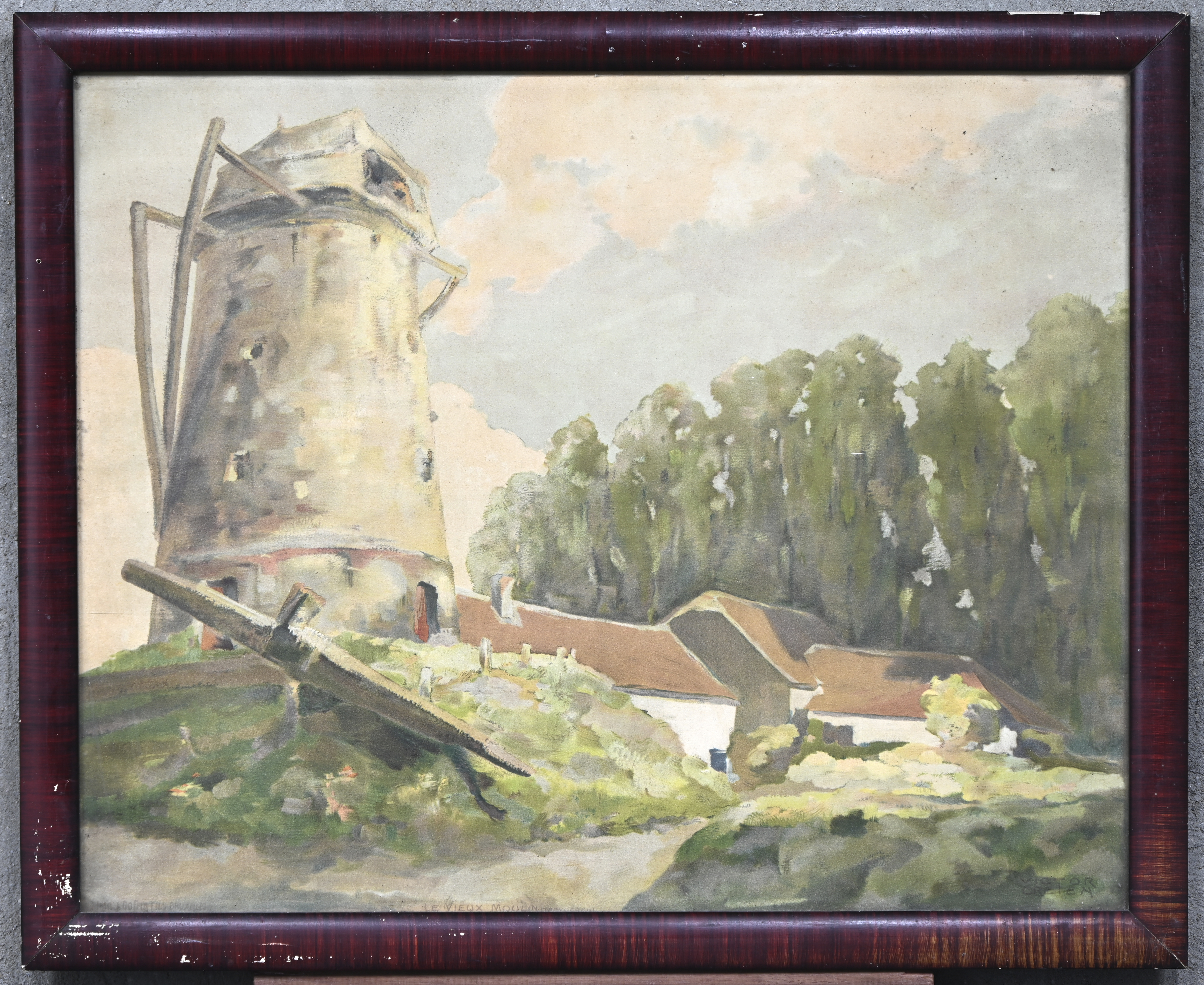 “De oude molen”, een aquarel op papier, gesigneerd Victor Creten.
