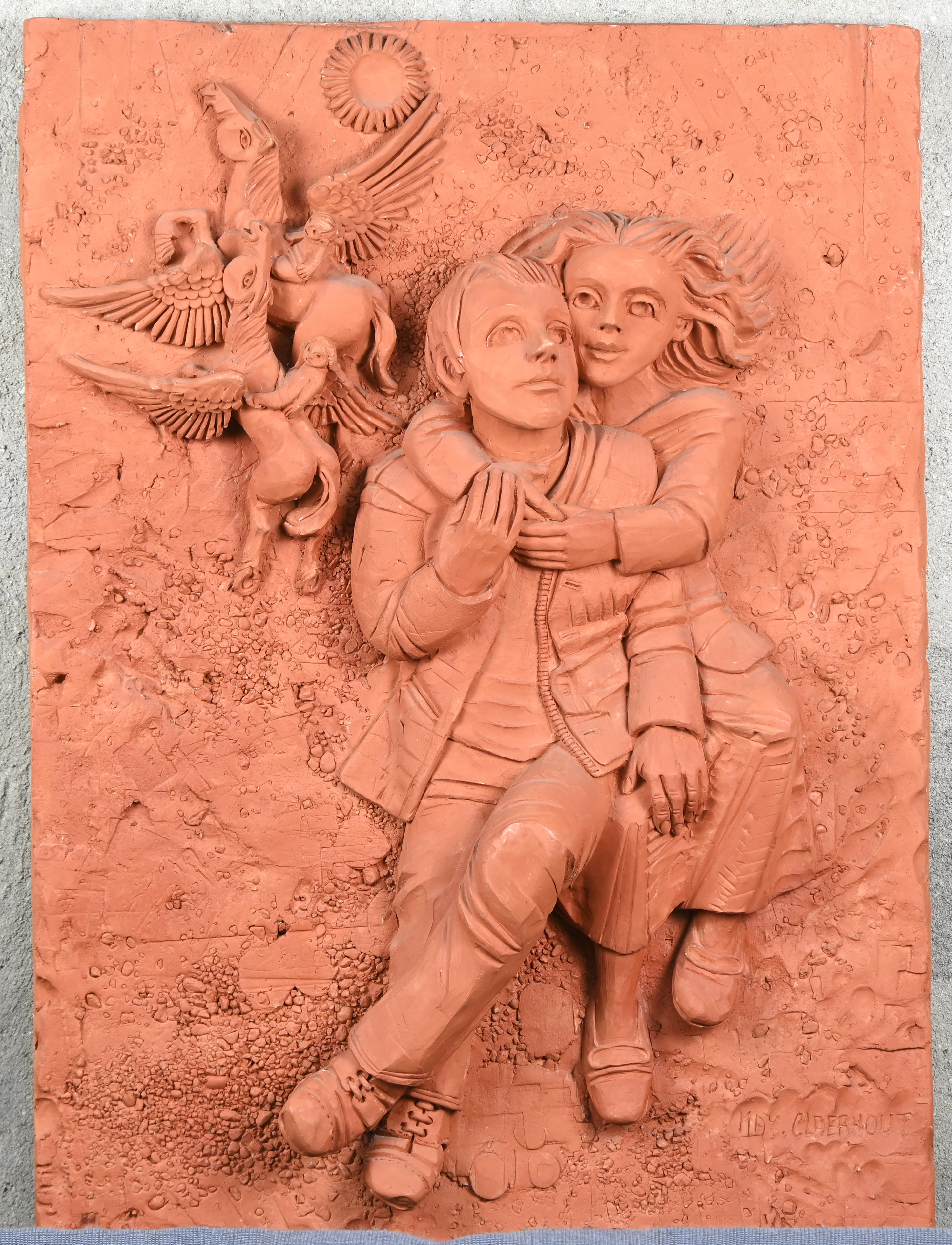 Kuifje en Bobbie, een kunststoffen buste van onze stripheld.