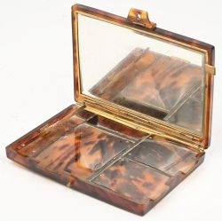#123Een make-up doos met ingebouwde spiegel, afkomstig uit de 19e eeuw, met schildpadmotief.