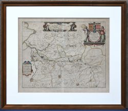 #599Period: 1635‘Mechlinia Dominium et Aerschot’, een ingekleurde 17e eeuwse landkaart. Uitgegeven door Willem Janszoon Blaeu. Cartograaf; Michael Florent van Langren.