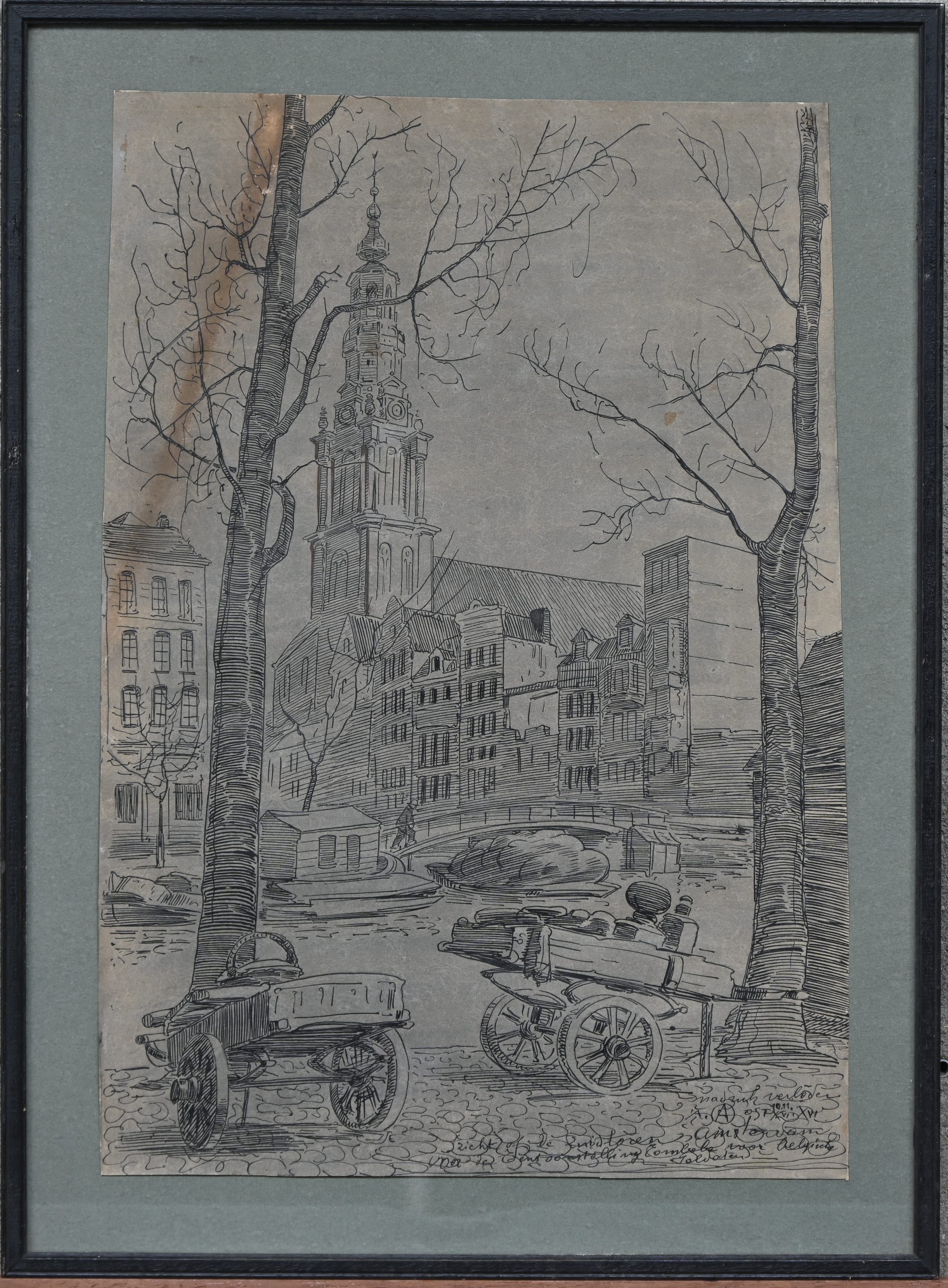 ‘De Zuidtoren te Amsterdam’, 1916. Chinese inkt op papier, gemonogrammeerd.