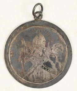 #5“Genootschap der bakkers gasten”, een zilveren penning uit 1828. Deze penning werd vaak gedragen door de Deken (C. De Smecht) van deze gilde.
