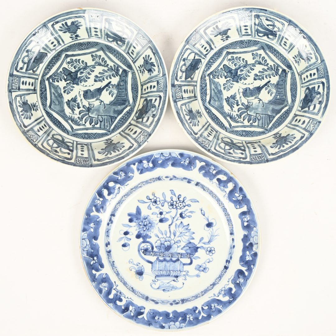 #120Een lot van Chinees porselein: drie dekselvazen, een kraagvaas famille verte en een kandelaar met western wapenschild.