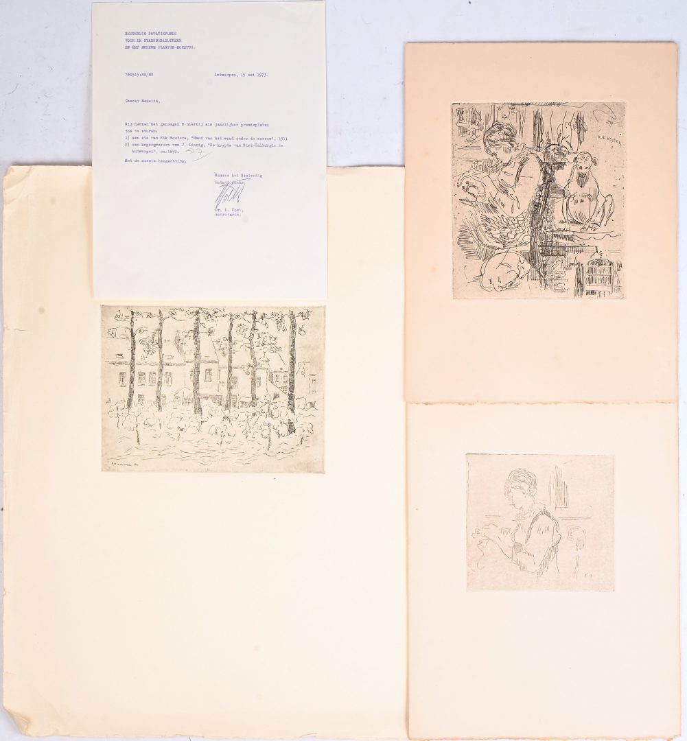 #312‘Liggend naakt’ en ‘Winterlandschap’, twee monochrome etsen getekend J. Gorus.