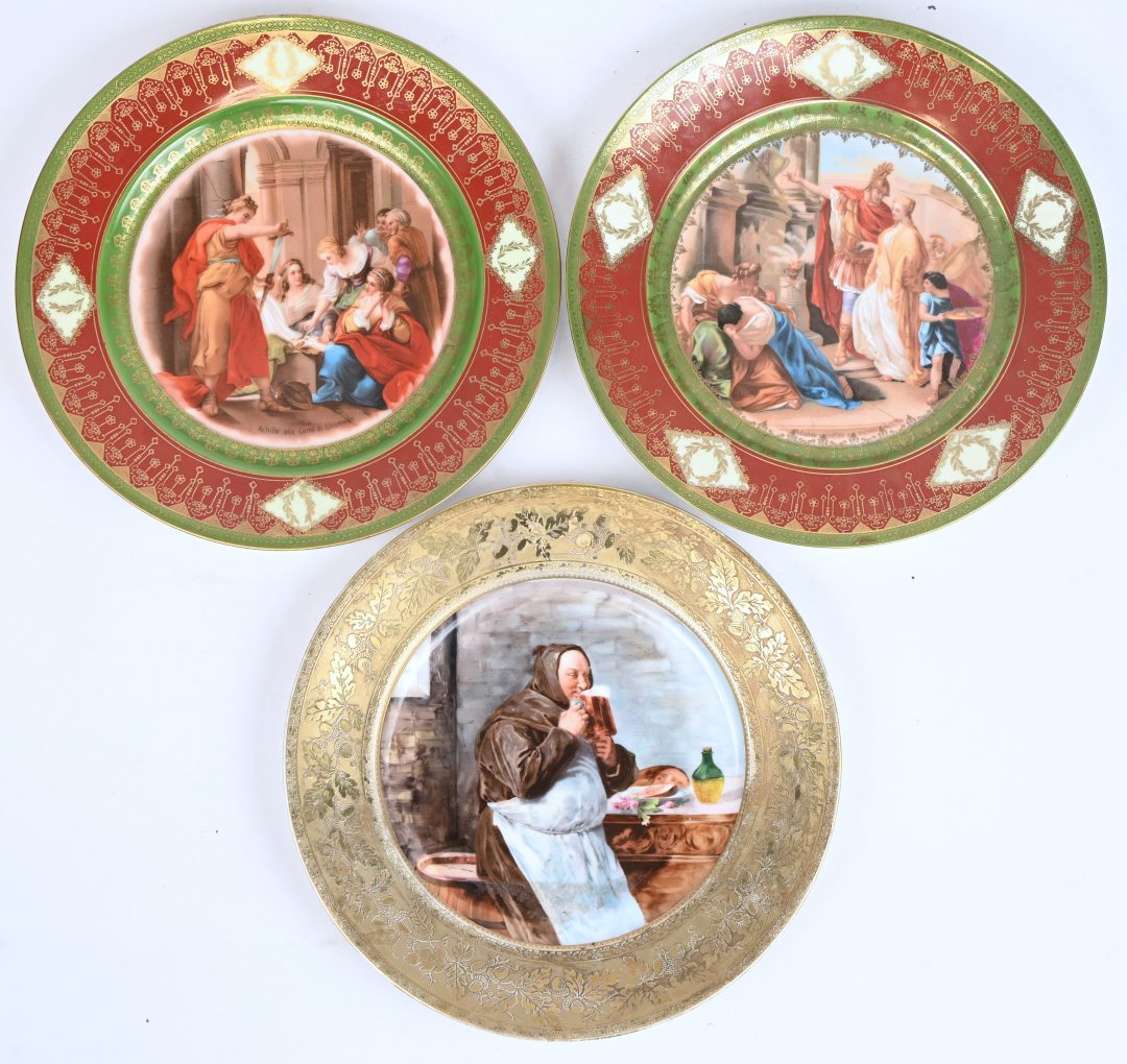 Three different porcelain dishes with gilt decoration in the Viennese style. Marked on the base.