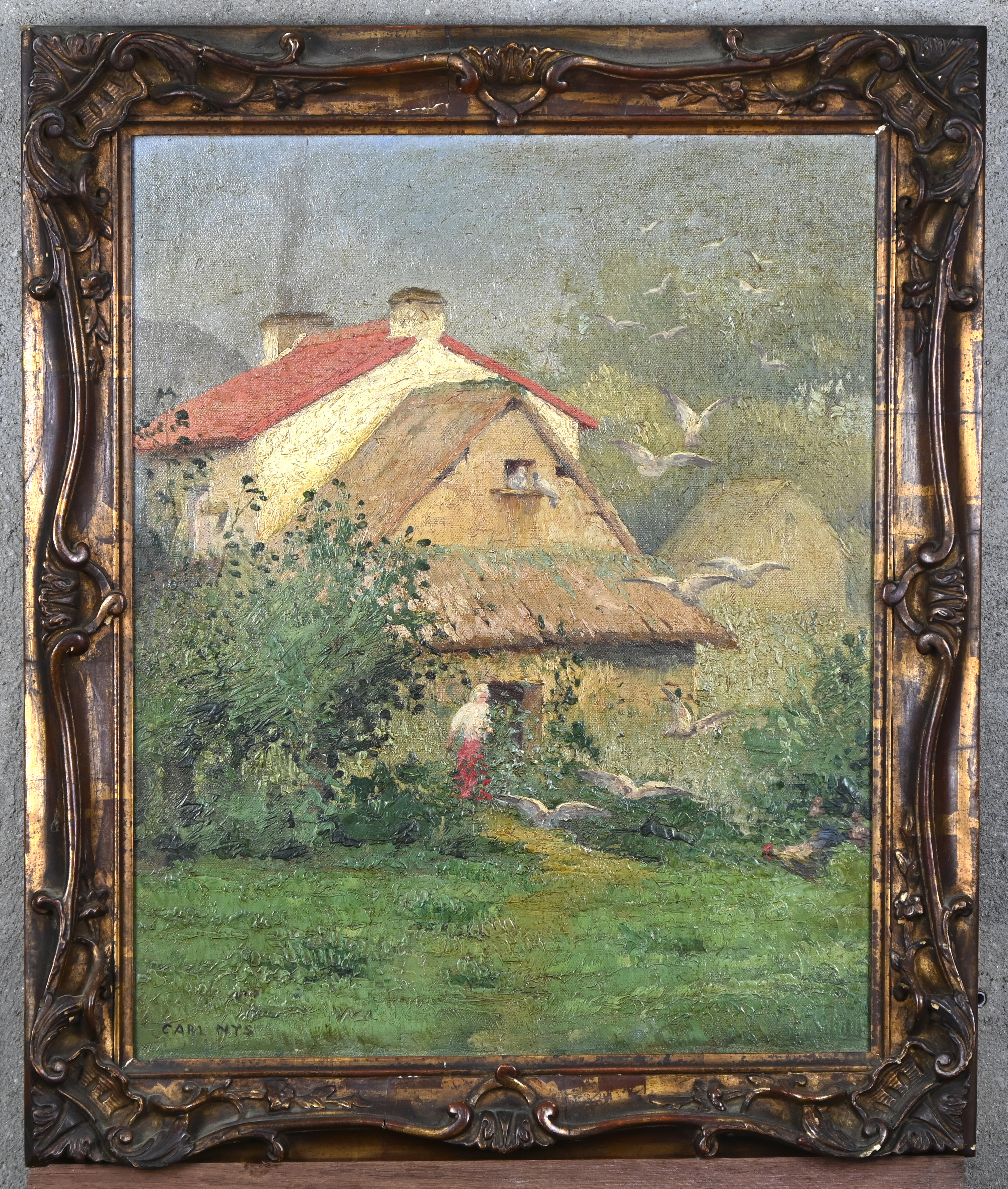 "Kempen farmhouse". Oil on panel. Signed lower left. -
