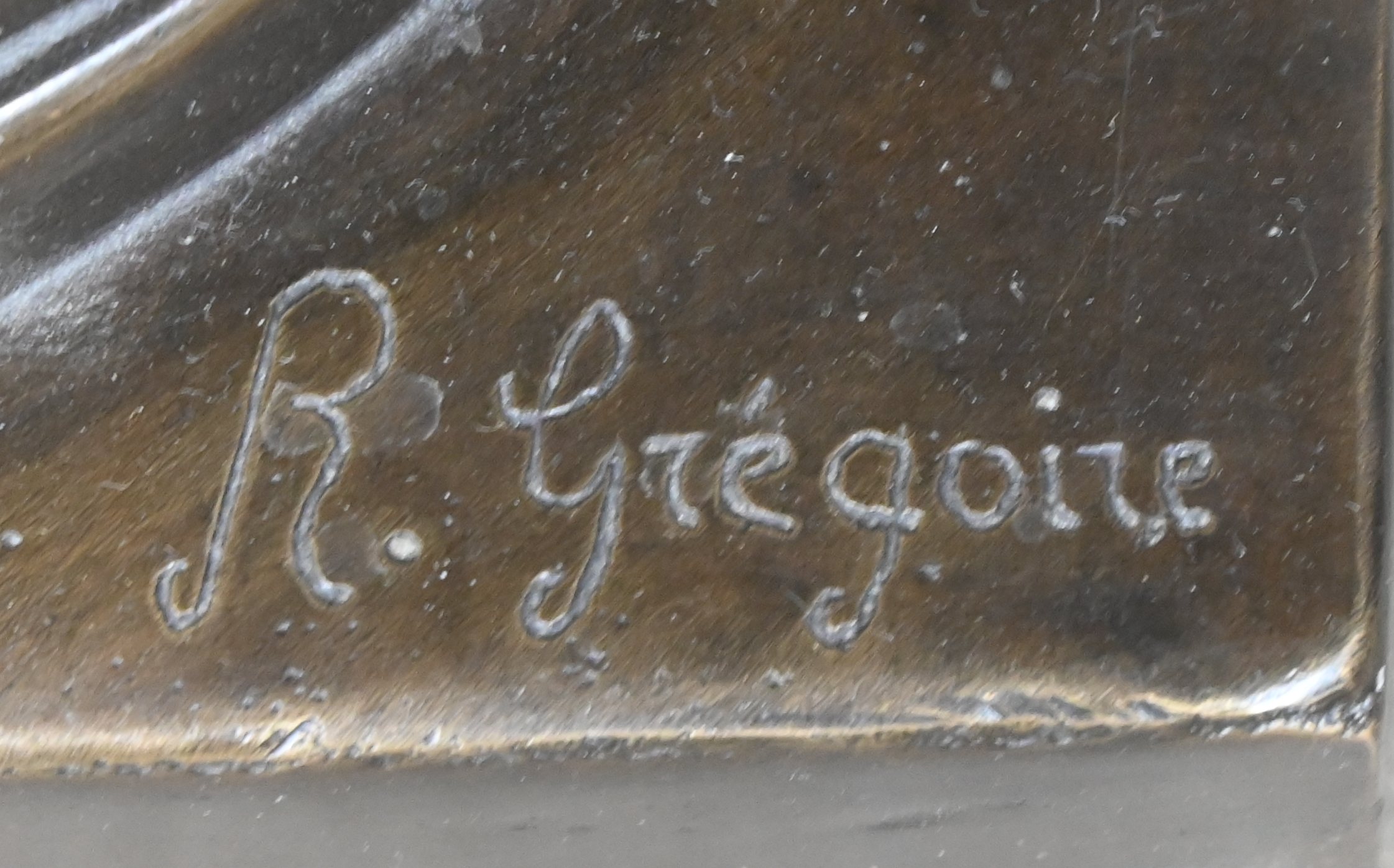 Een denkende haas ten halve lijve, gietijzer met roestpatina. Niet gemerkt.