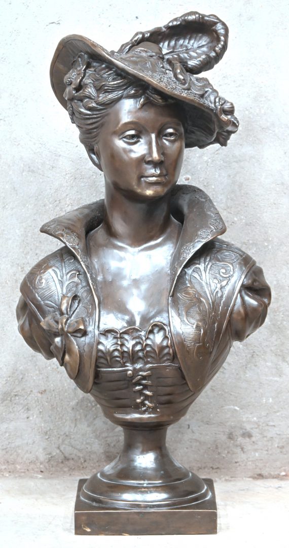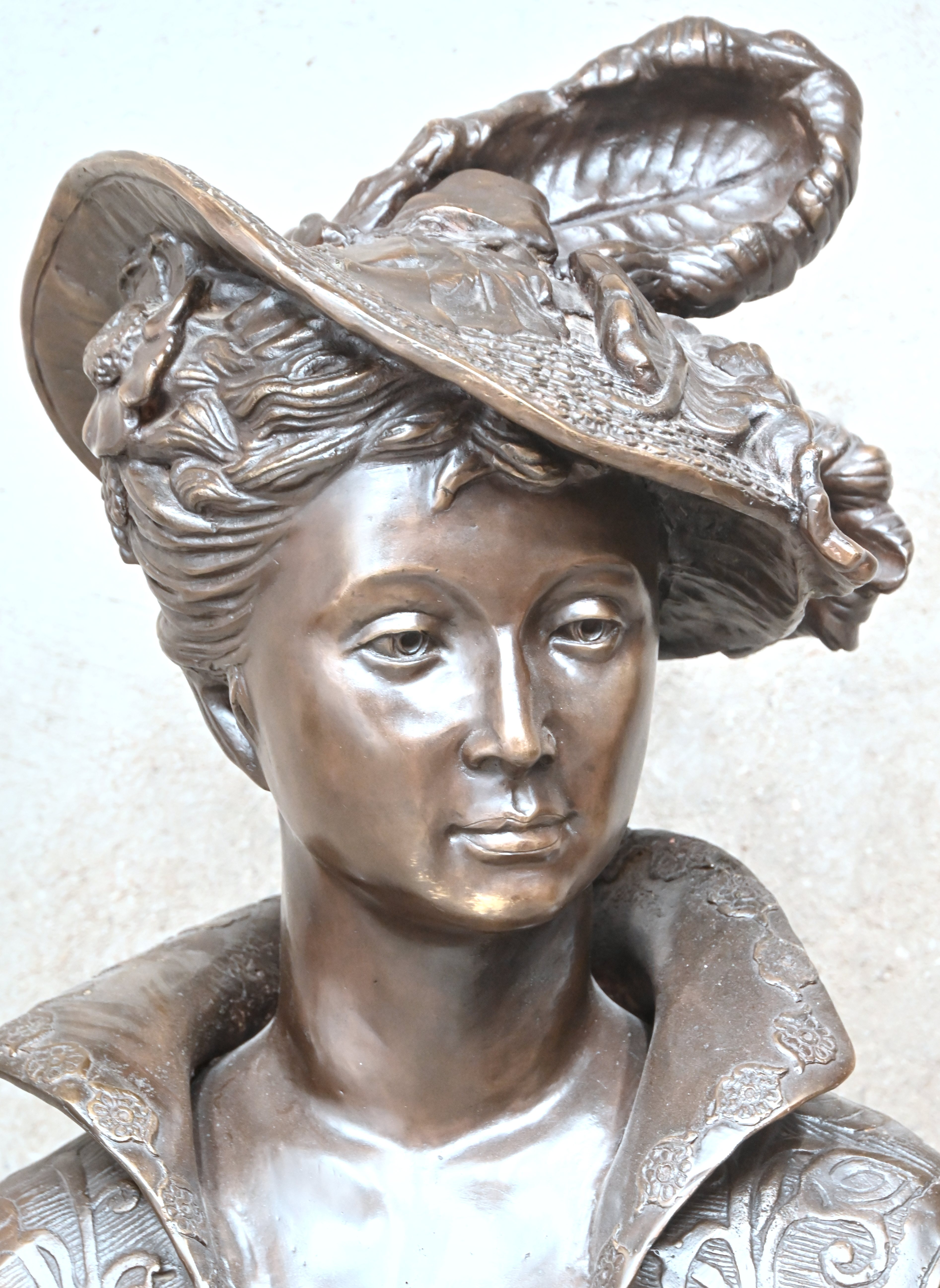Een buste van een jongedame, marmer en verguld brons, gesigneerd G. V. Vaerenbergh. Circa 1900.
