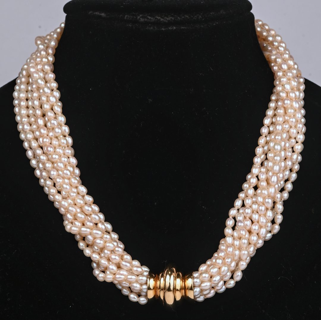 #537Bamun ‘Mbanga’ chef stalen ceremoniële halsband met 10 bronzen hoofden gedecoreerd.