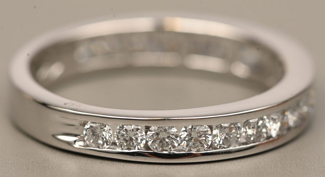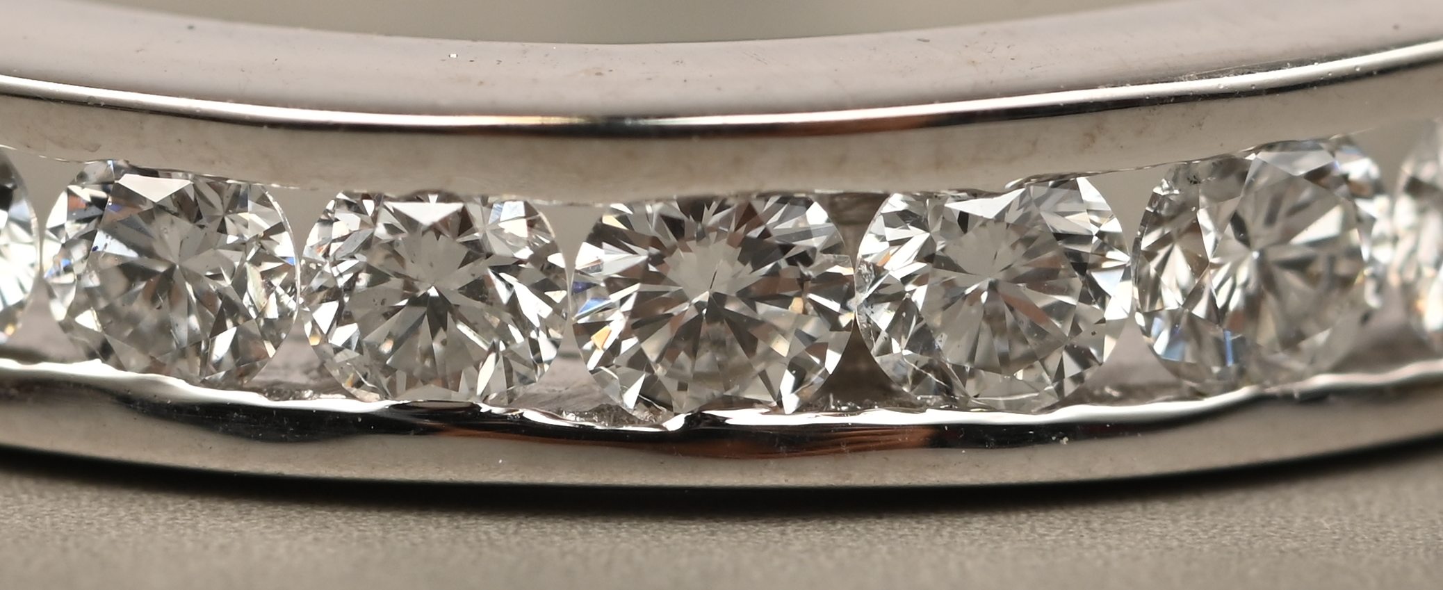 Een 18 karaats witgouden ring bezet met briljanten met een gezamenlijk gewicht van +- 0,38 ct.
