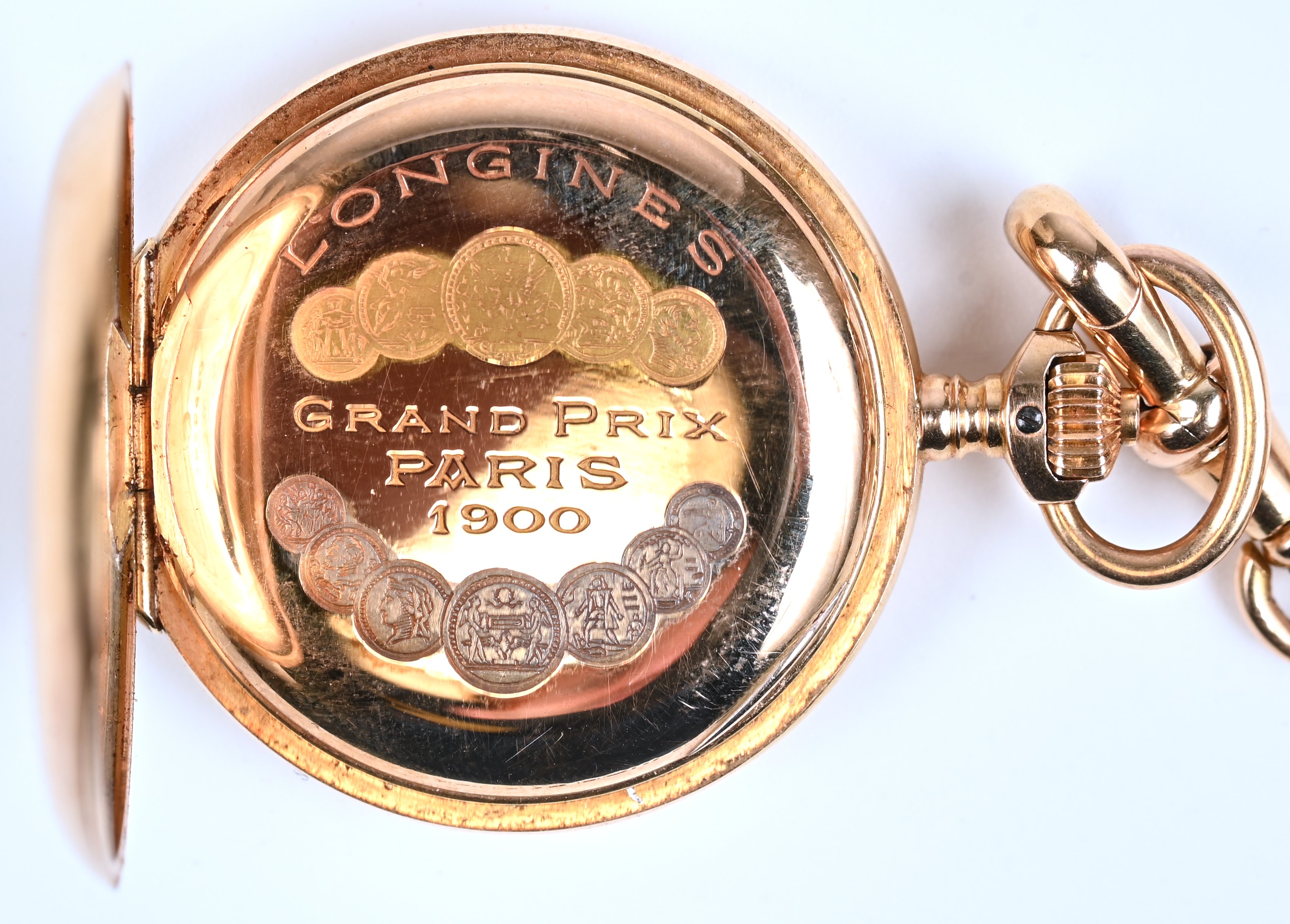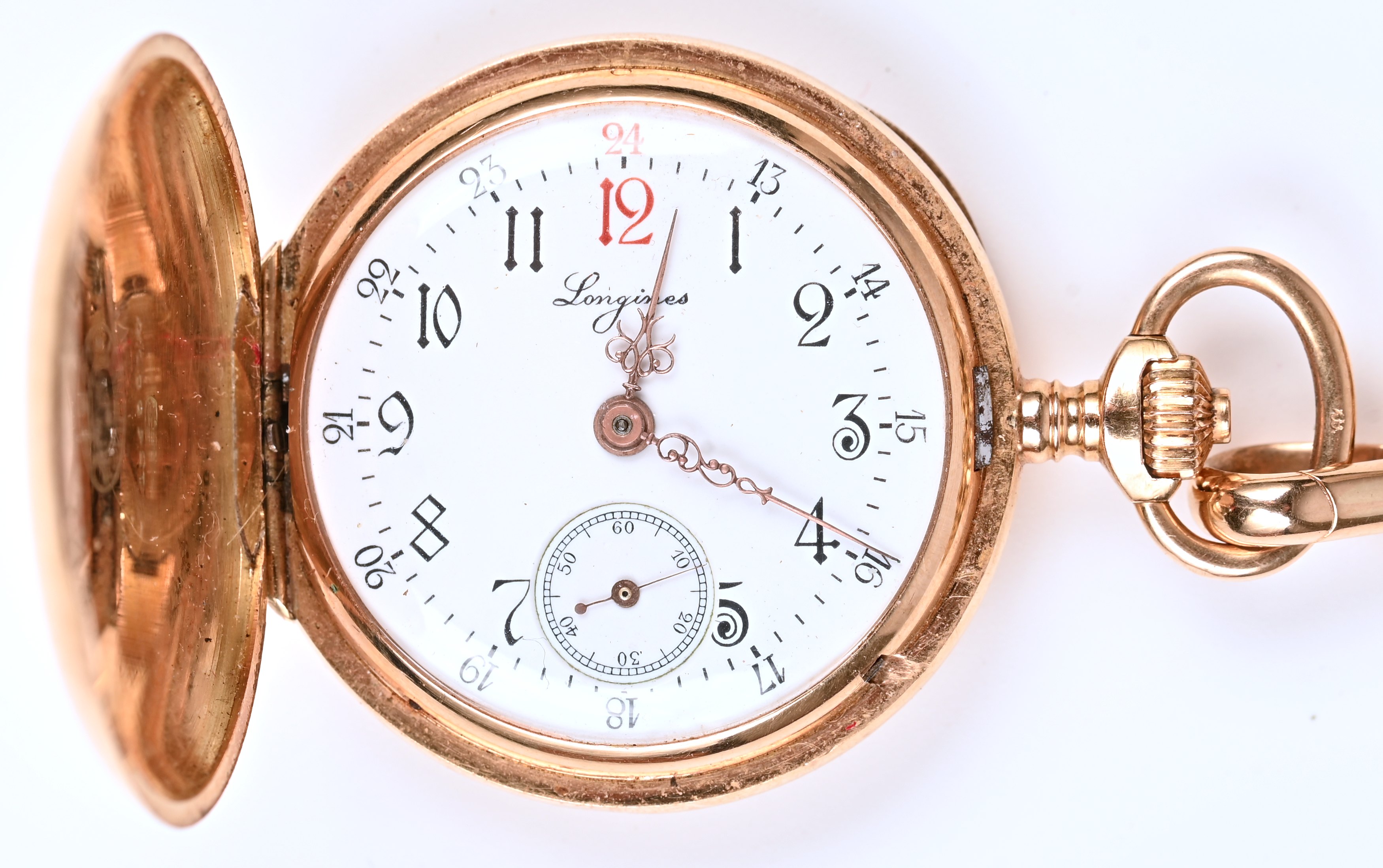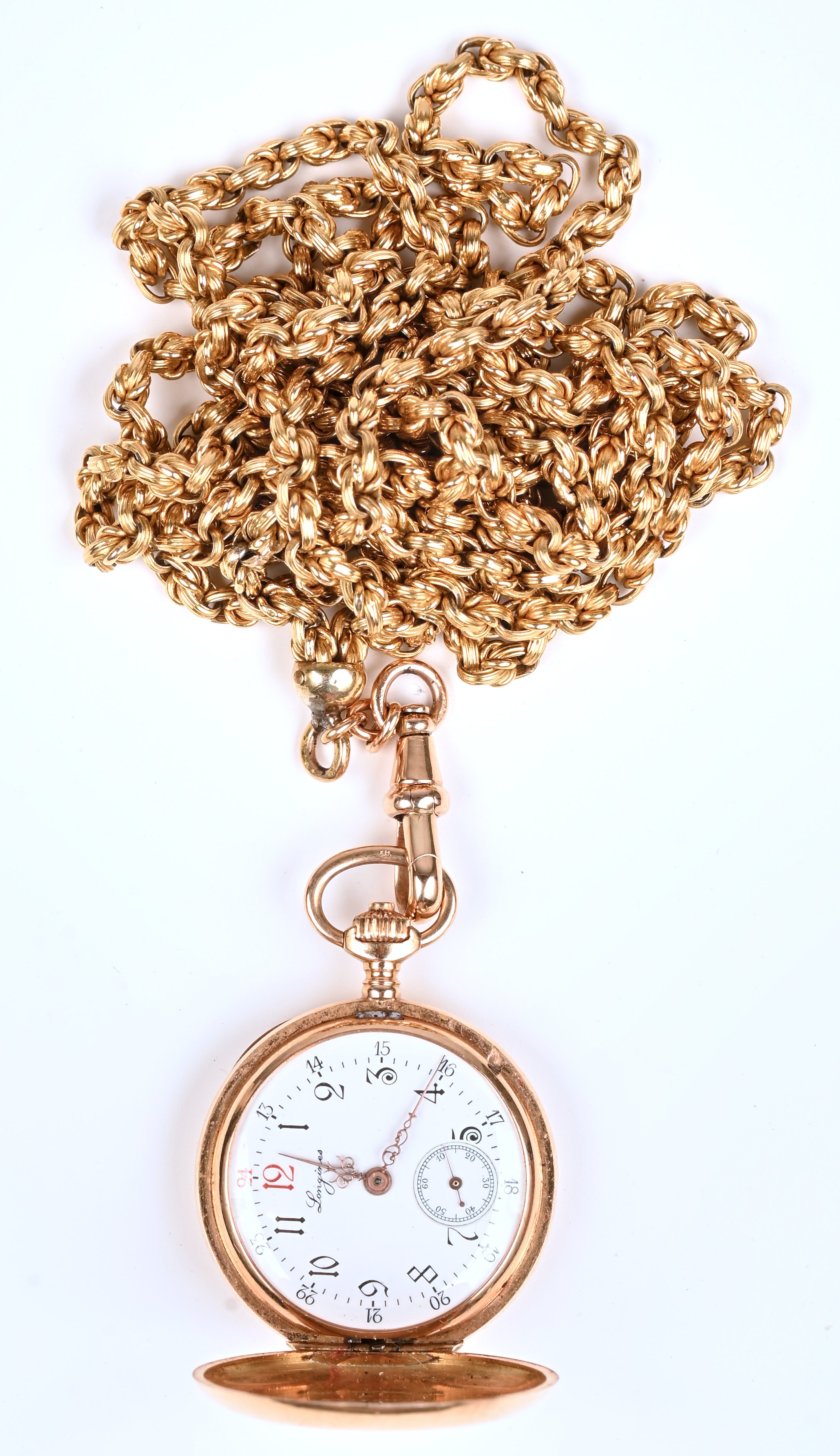 A Comtoise clock marked on the enamel dial: Léon Véron, à St. Hilaire-de-Harcouët, Dinanderie frame and pendulum with peacocks in the decoration. Damage to the enamel. With wall bracket. -