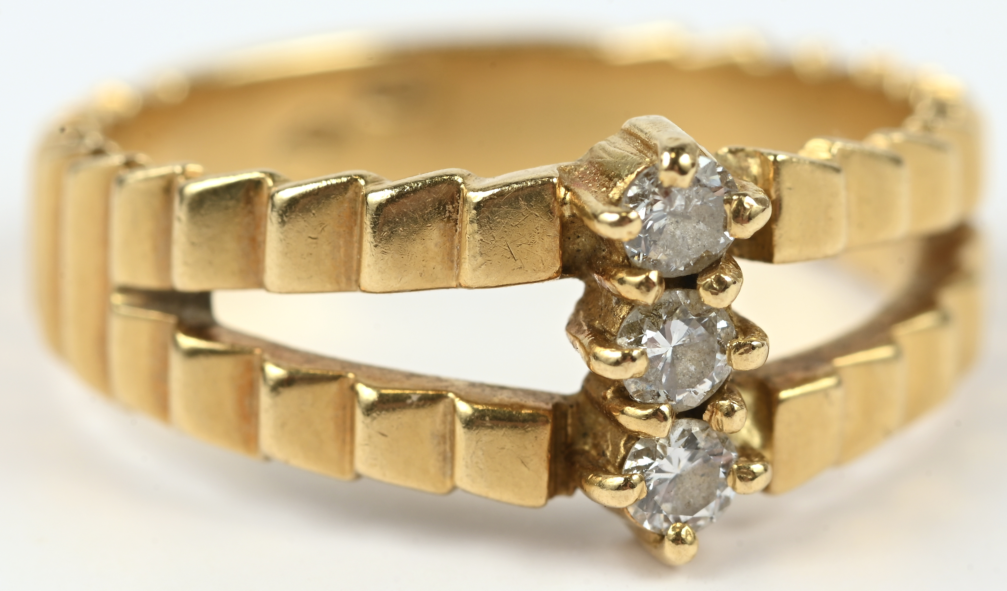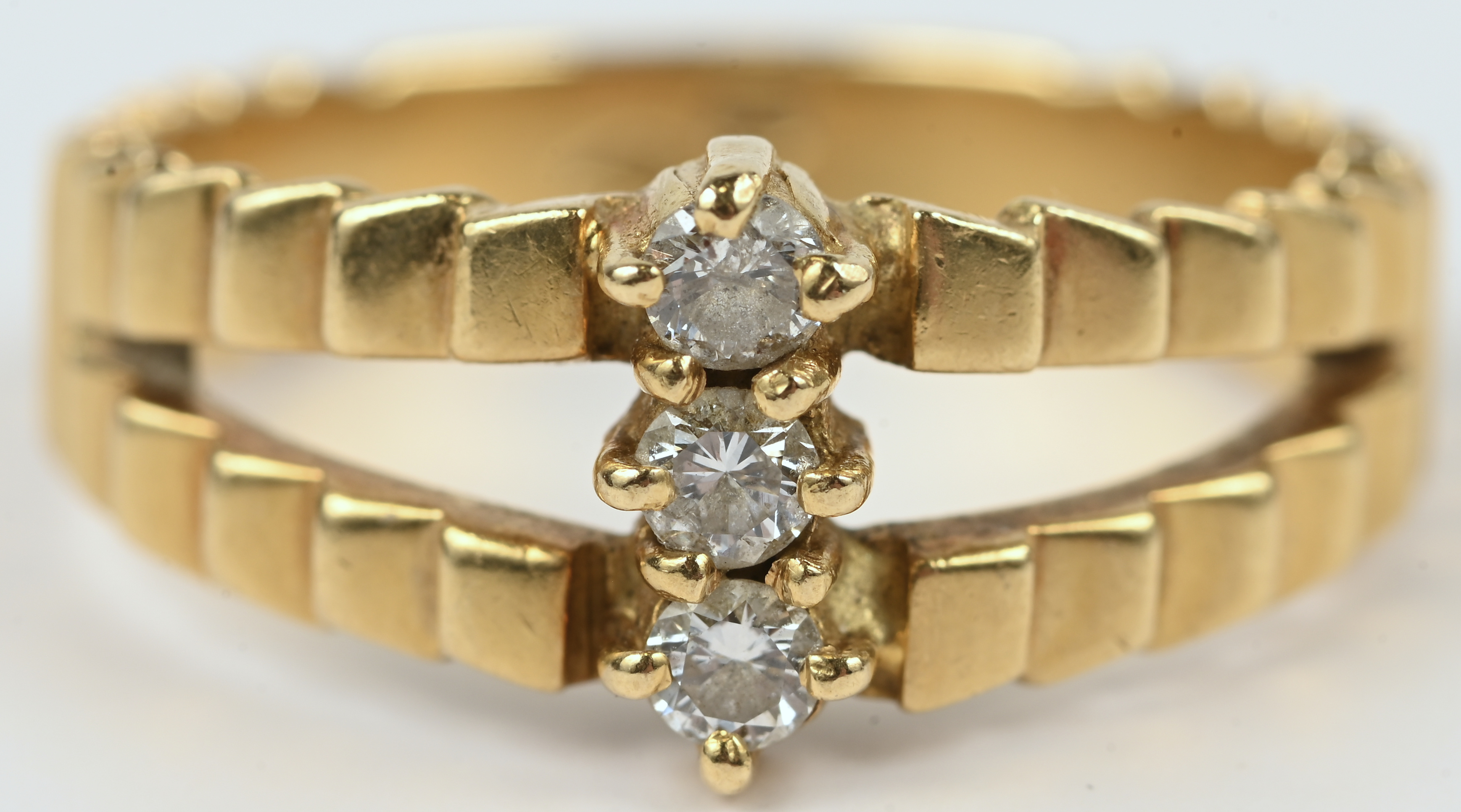 Een 18 kt wit en geelgouden ring bezet met een solitair van +- 0,25 ct.