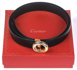 #45CartierEen zwart lederen centuur met gesp in twee kleuren. Gemerkt en in originele doos.