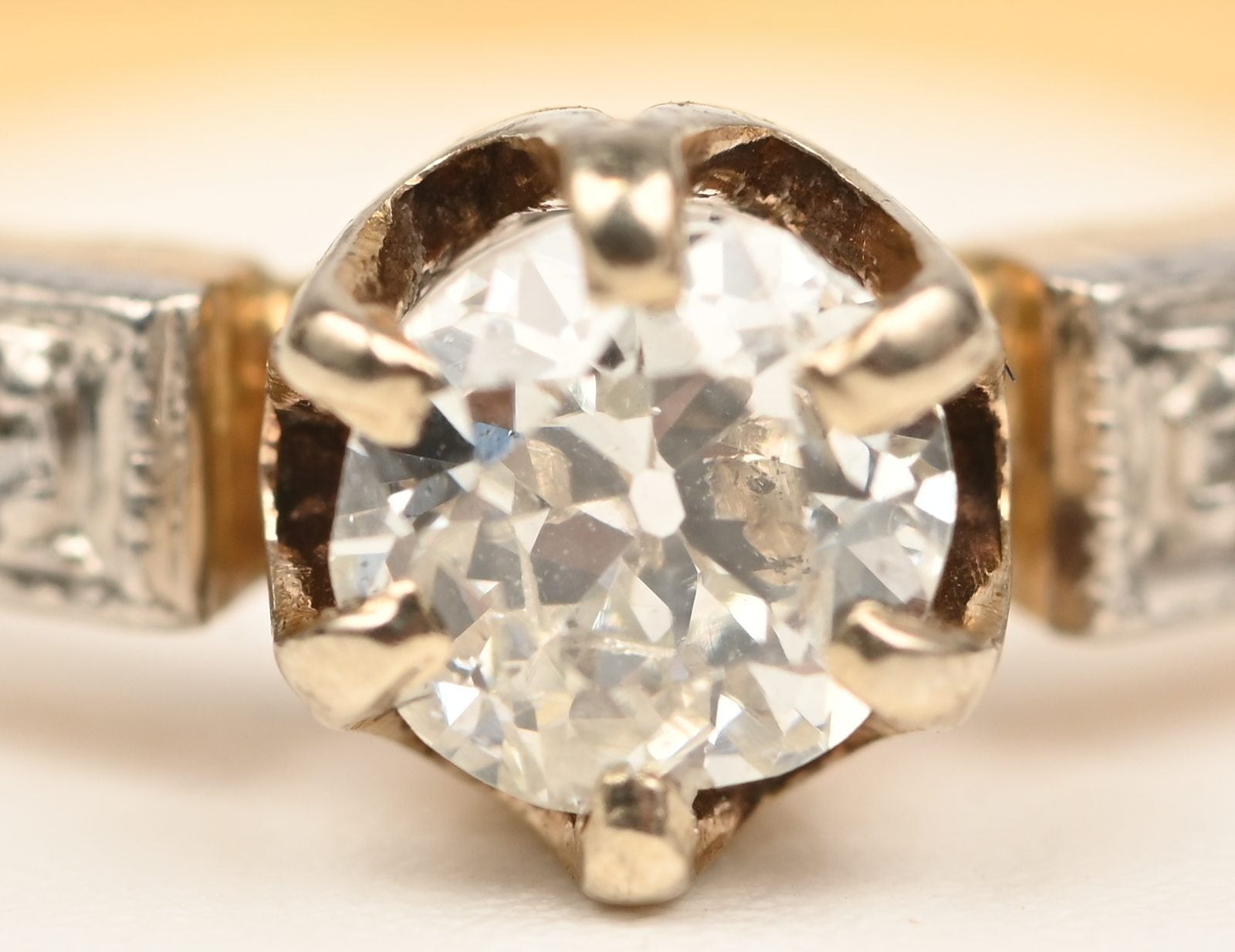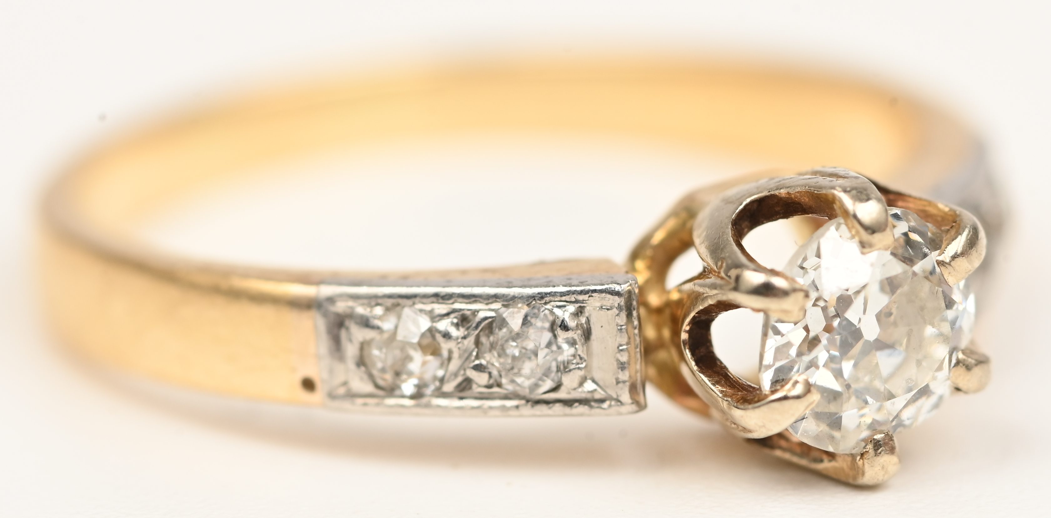 An 18 kt white and yellow gold ring set with diamonds with a total weight of approximately 0.30 ct.