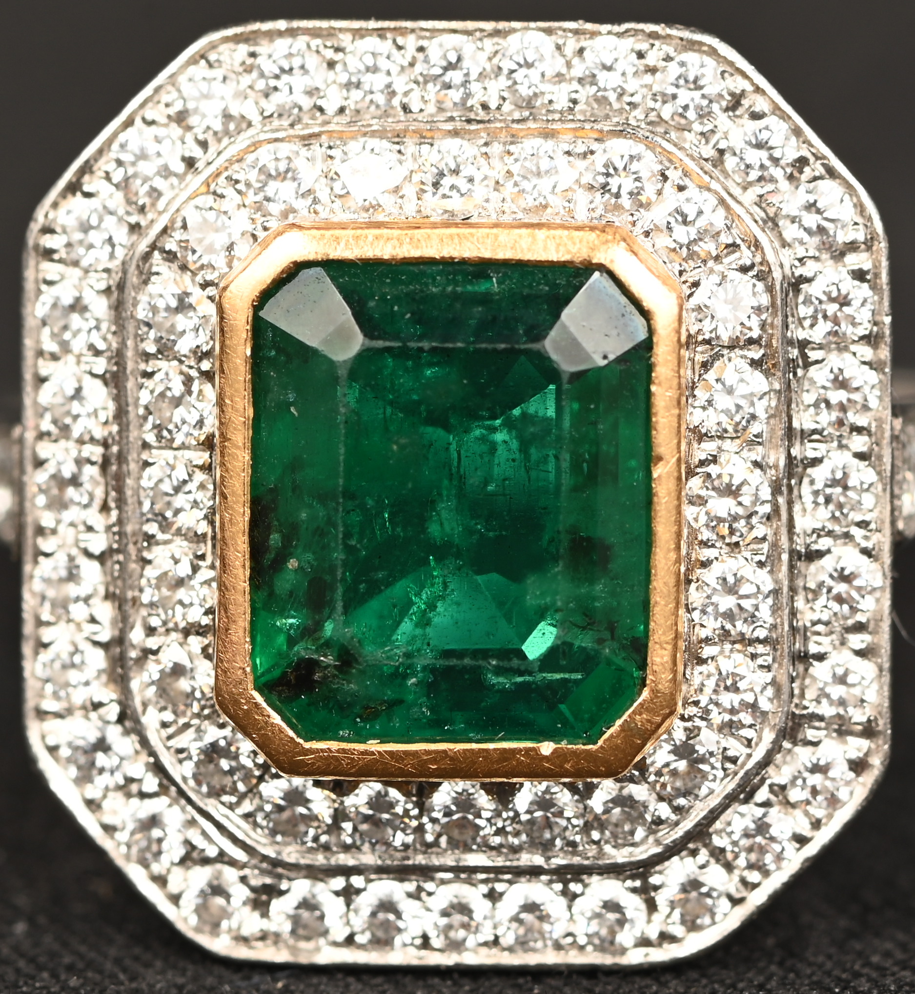 Een 18 kt wit en omkeerbare geelgouden halssnoer met hanger bezet met fantasiestenen. We voegen er een 18 kt witgouden oorbel bezet met briljanten met een gezamenlijk gewicht van +- 0,30 ct en 1,32 g aan toe.