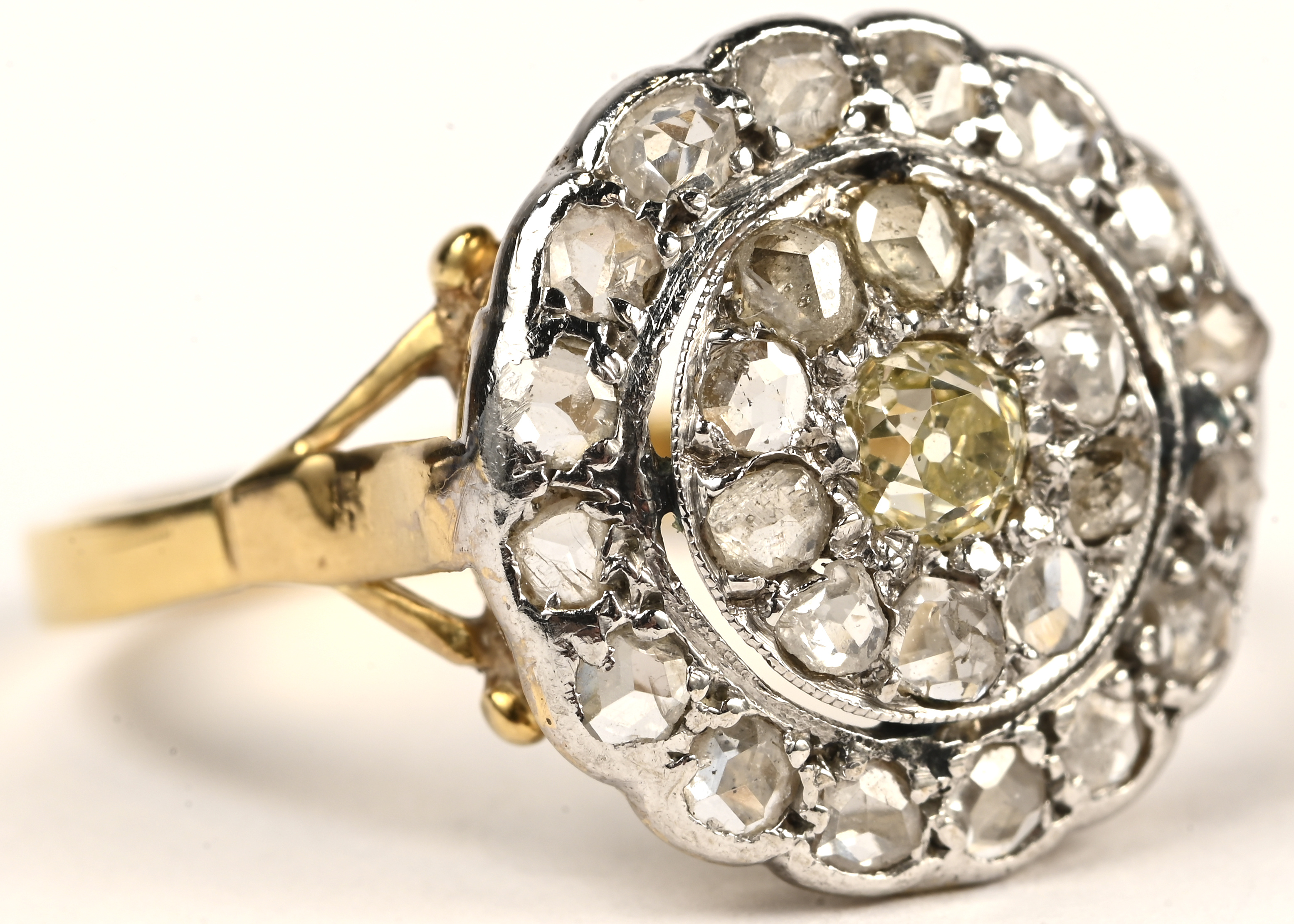 An 18kt yellow gold ring set with diamonds and sapphires with a total weight of approximately 0.40 ct.No longer availableDim. 4,28 gEstimate: € 700 / 800 -