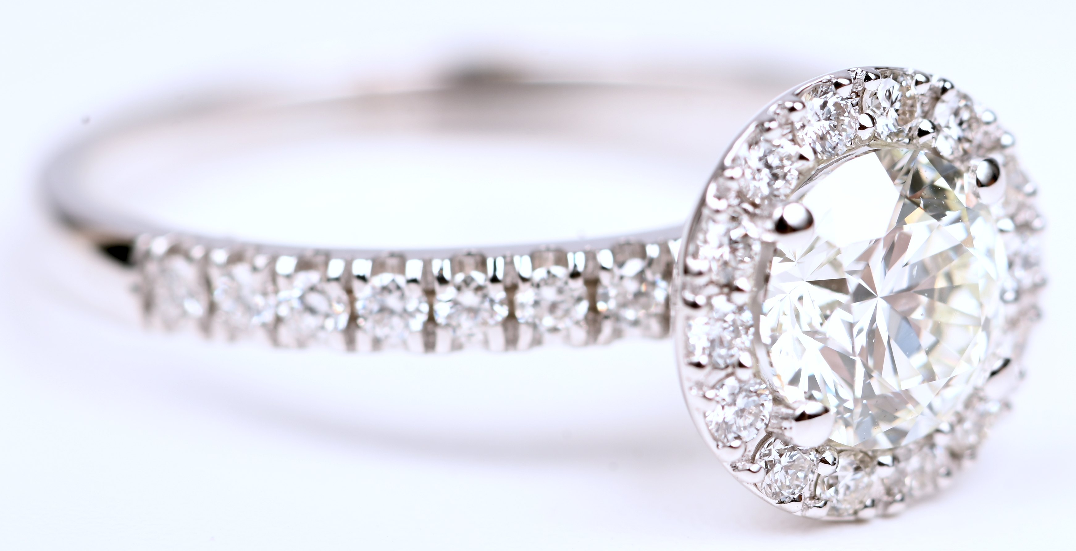 #160Een 18 kt geelgouden ring bezet met centrale briljant van 0,51 ct. en briljanten met een gezamenlijk gewicht van 0,32 ct.