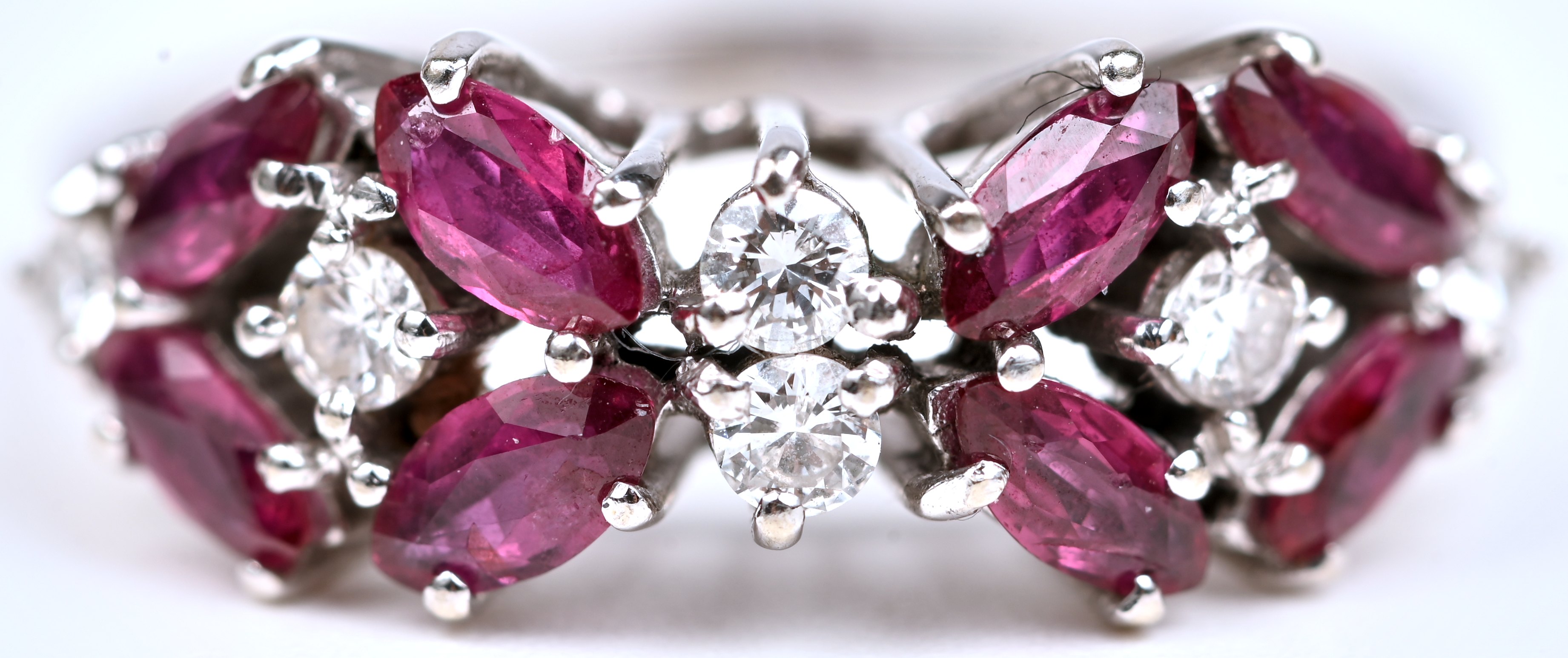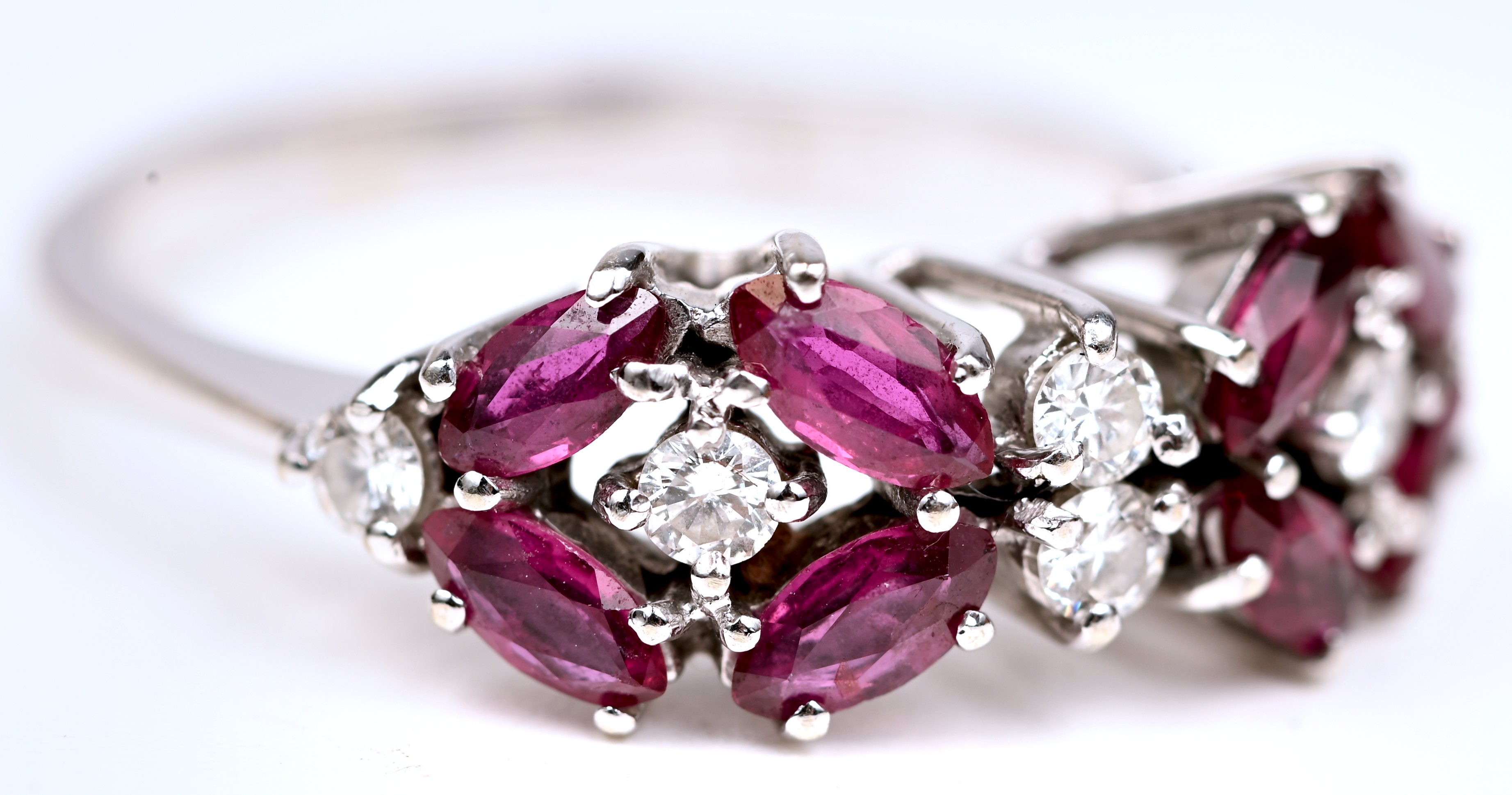 A pair of yellow gold earrings set with diamonds totaling approximately 0.40 ct. and rubies totaling approximately 0.60 ct. -