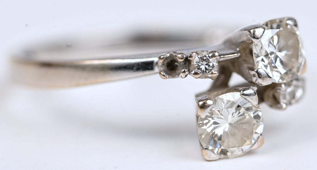 An 18 kt white gold ring set with diamonds totaling approximately 0.50 ct.