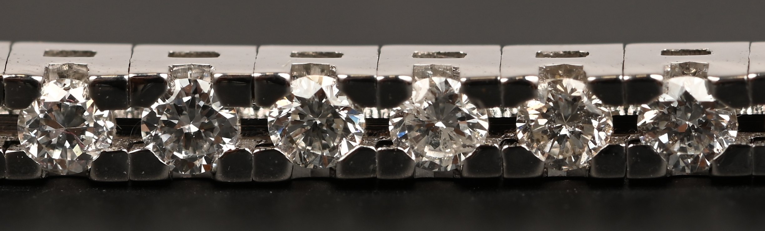 An 18 kt. white gold tennis bracelet with brilliant-cut diamonds totaling approximately 1.82 ct. FVVS.