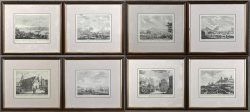 #199Een set van 8 antieke gravures met taferelen van 18e eeuws krijgsgewoel. Beleg van de stad Rijsel, Overwinning van Gemmapes, Herneming van Toulon en andere. Bij 1 kader is het glas manco.