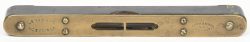 #259Een antieke waterpas, koper en hout, Lewis & Co, Sheffield.