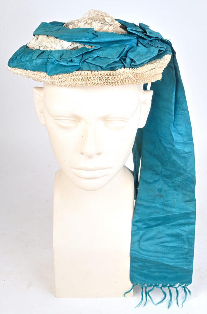 A varied lot of textiles, including lace, crochet, and two scarves. -