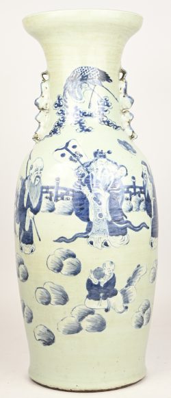 #383Een Chinees porseleinen celadon vaas met wijsgeren gedecoreerd.
