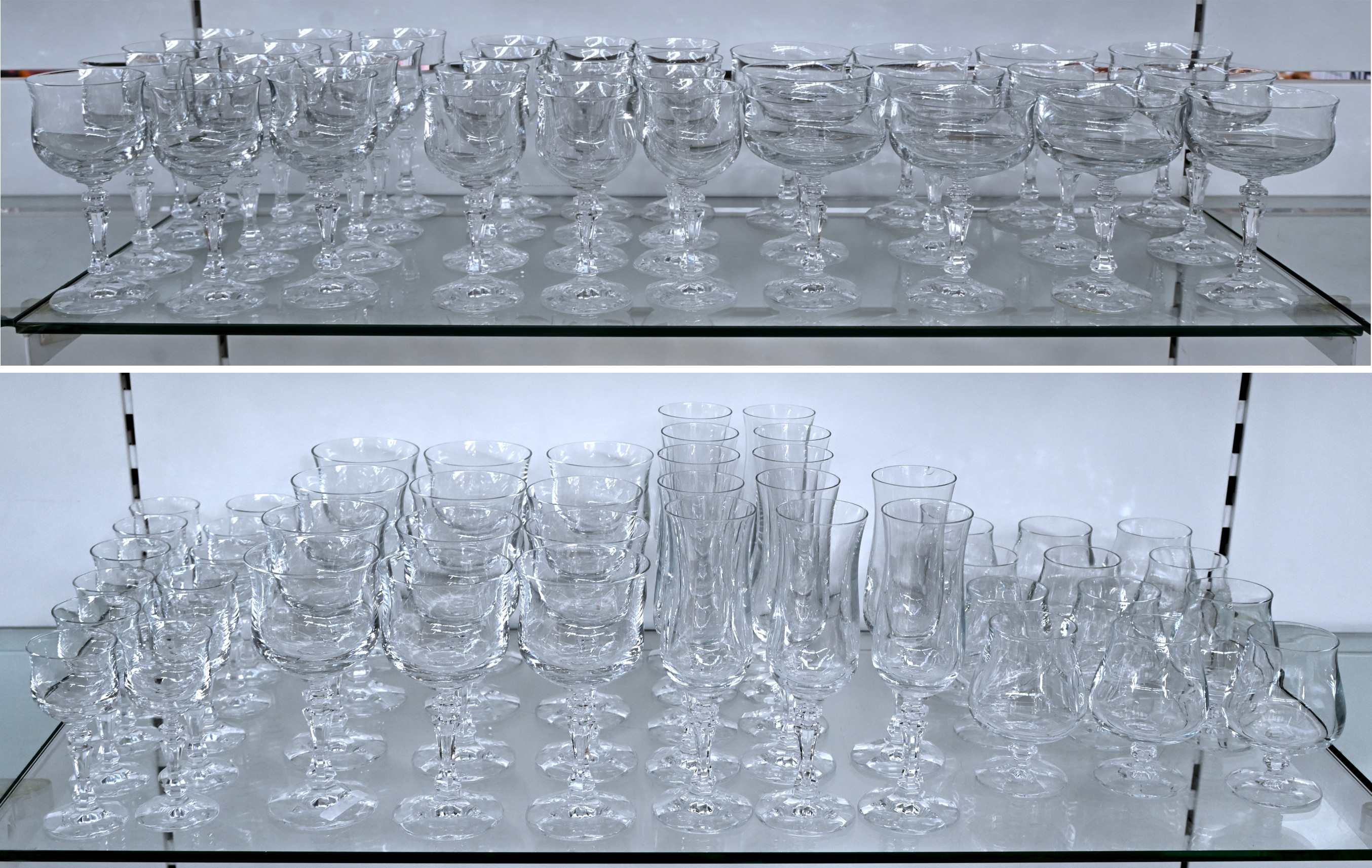 #599Champagnecoupes en portoglaasjes van geslepen kristal.