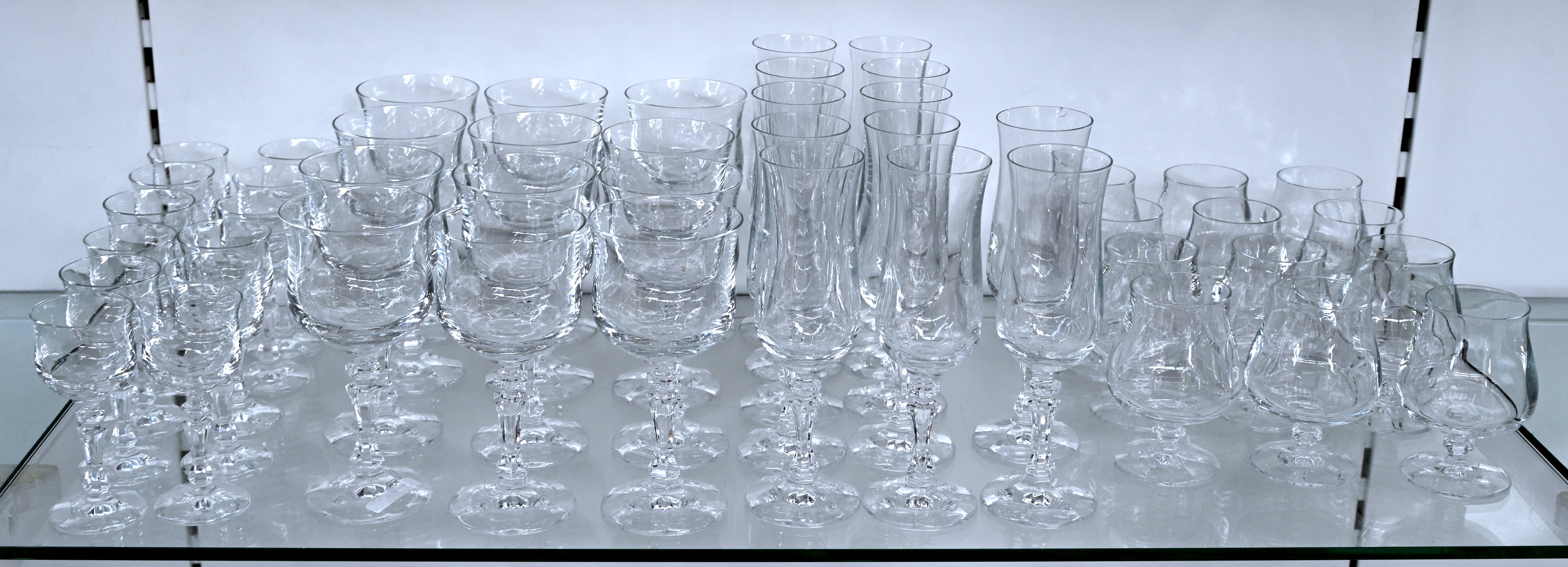 #541Een lot van 39 vintage kristallen glazen, 6 x 19 cm, 9 x 16 cm, 6 x 15 cm, 6 x 14 cm en 12 x 12 cm hoog.